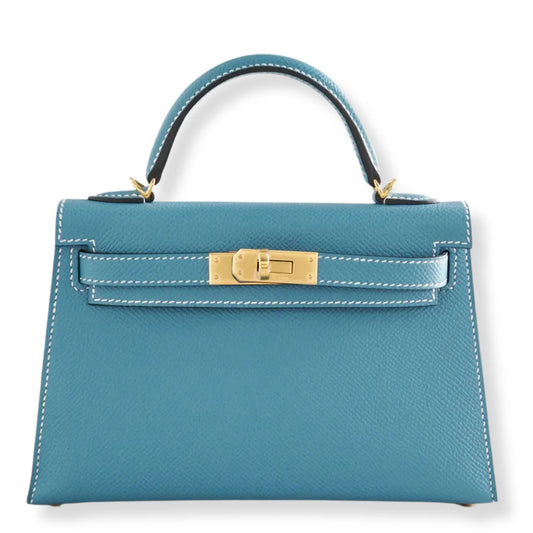 BOLSO HERMÈS MINI KELLY DE PIEL EPSOM AZUL VAQUERO