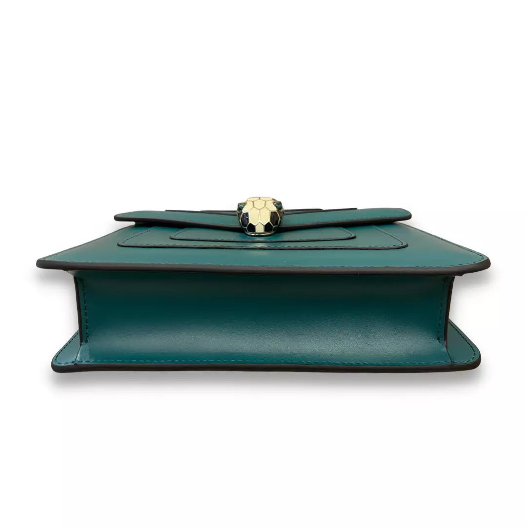 Este bolso de mano BVLGARI Serpenti Forever de piel verde esmeralda usado, con herrajes dorados, está en muy buenas condiciones.