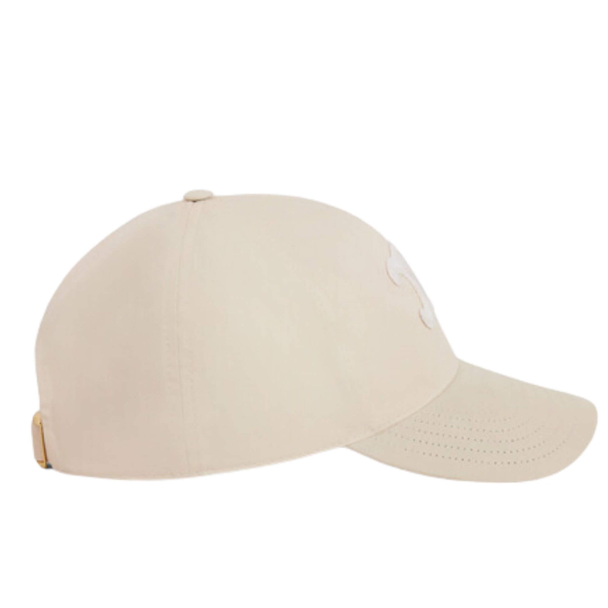 Esta NUEVA gorra de béisbol de Celine está confeccionada en gabardina de algodón color vainilla con un parche del triunfo blanco en la parte delantera. Los detalles son de metal con acabado dorado.