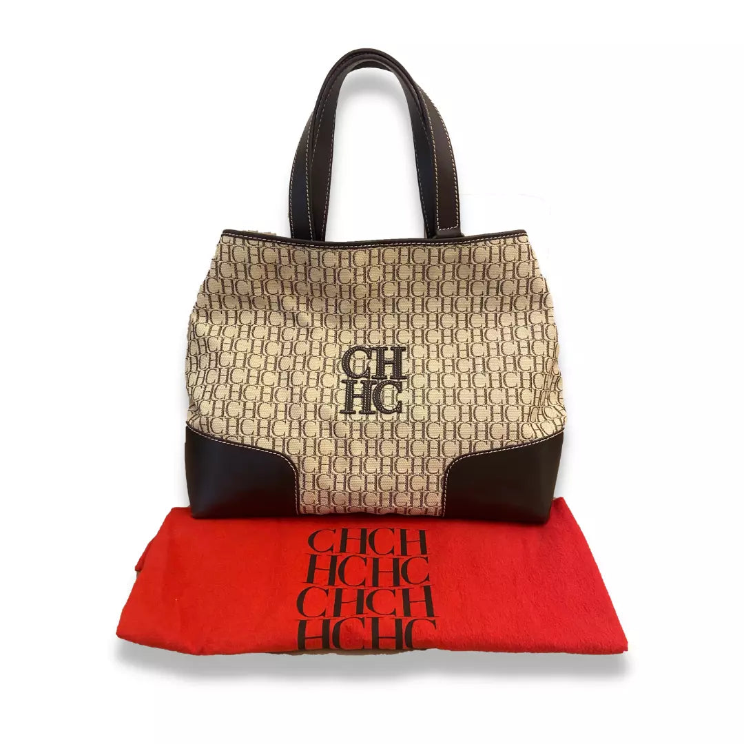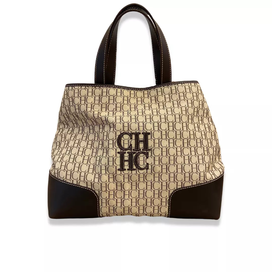BOLSO TOTE DE LONA CON MONOGRAMA CH DE CAROLINA HERRERA