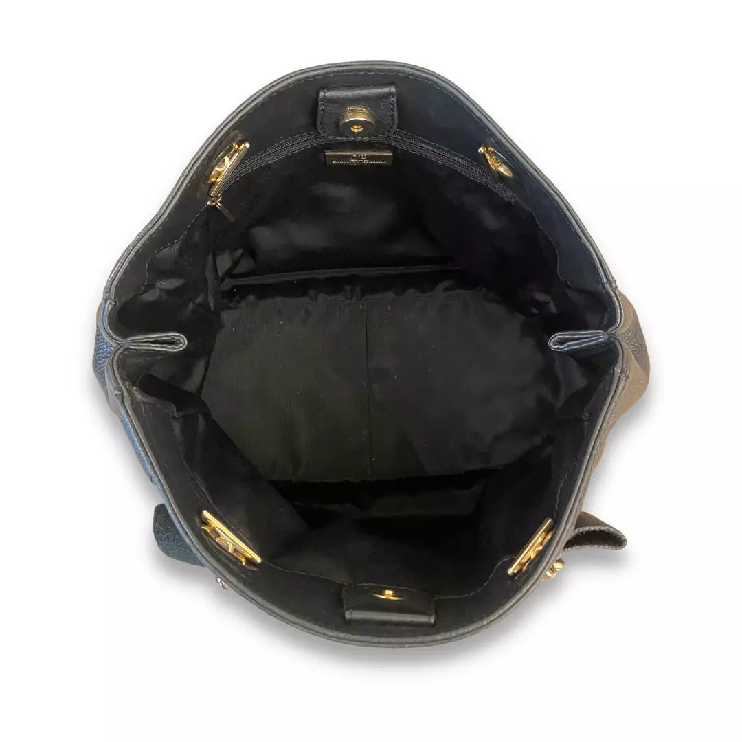 Este bolso Audrey de cuero con monograma de Carolina Herrera usado con detalles de cuero negro se encuentra en muy buenas condiciones.