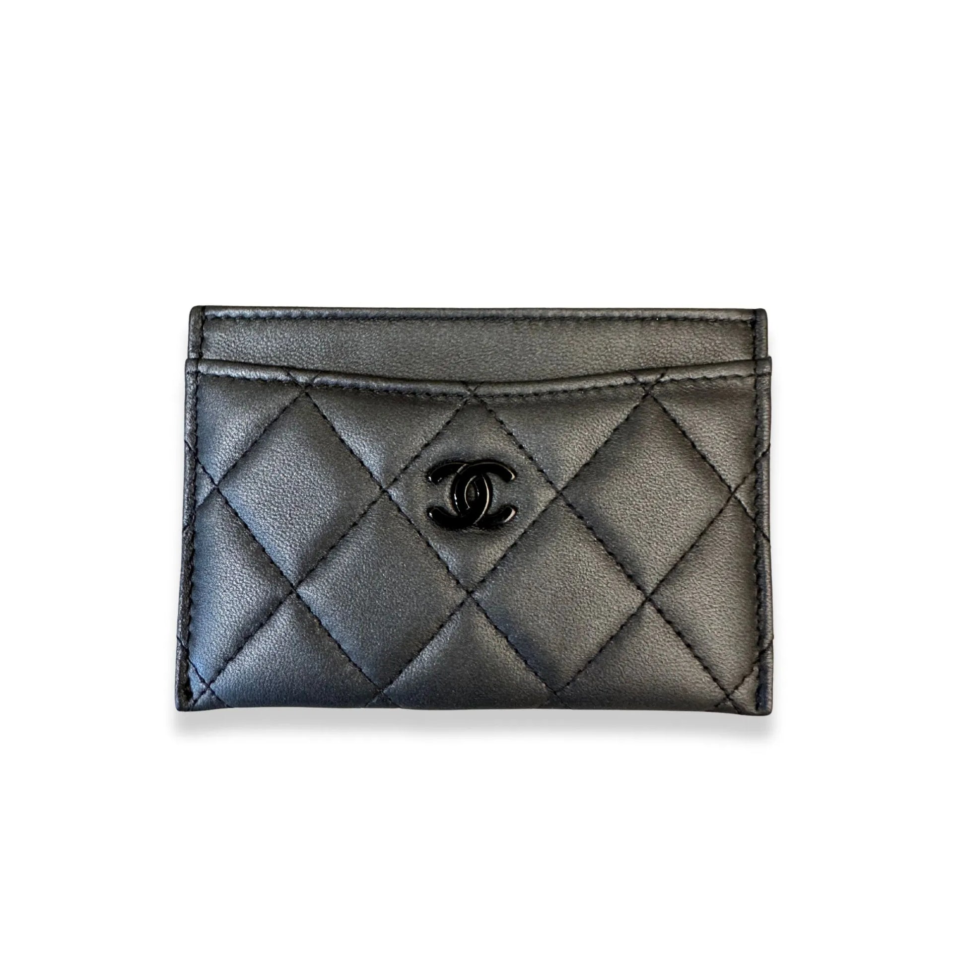 Este nuevo tarjetero clásico de cuero negro de Chanel con el logotipo de Chanel es un modelo completamente negro de edición limitada.