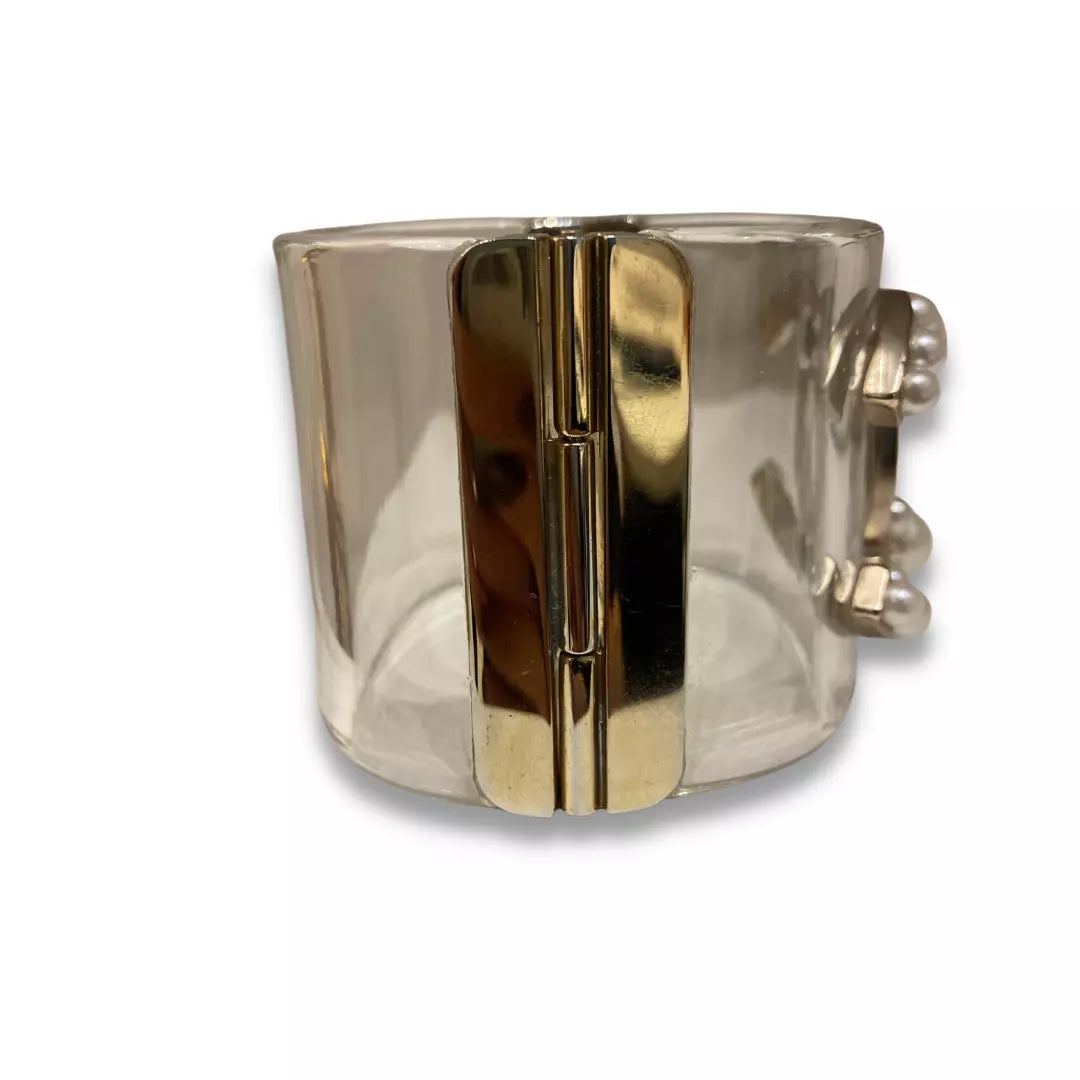 PULSERA ANCHA DE RESINA TRANSPARENTE Y PERLAS CC DE CHANEL