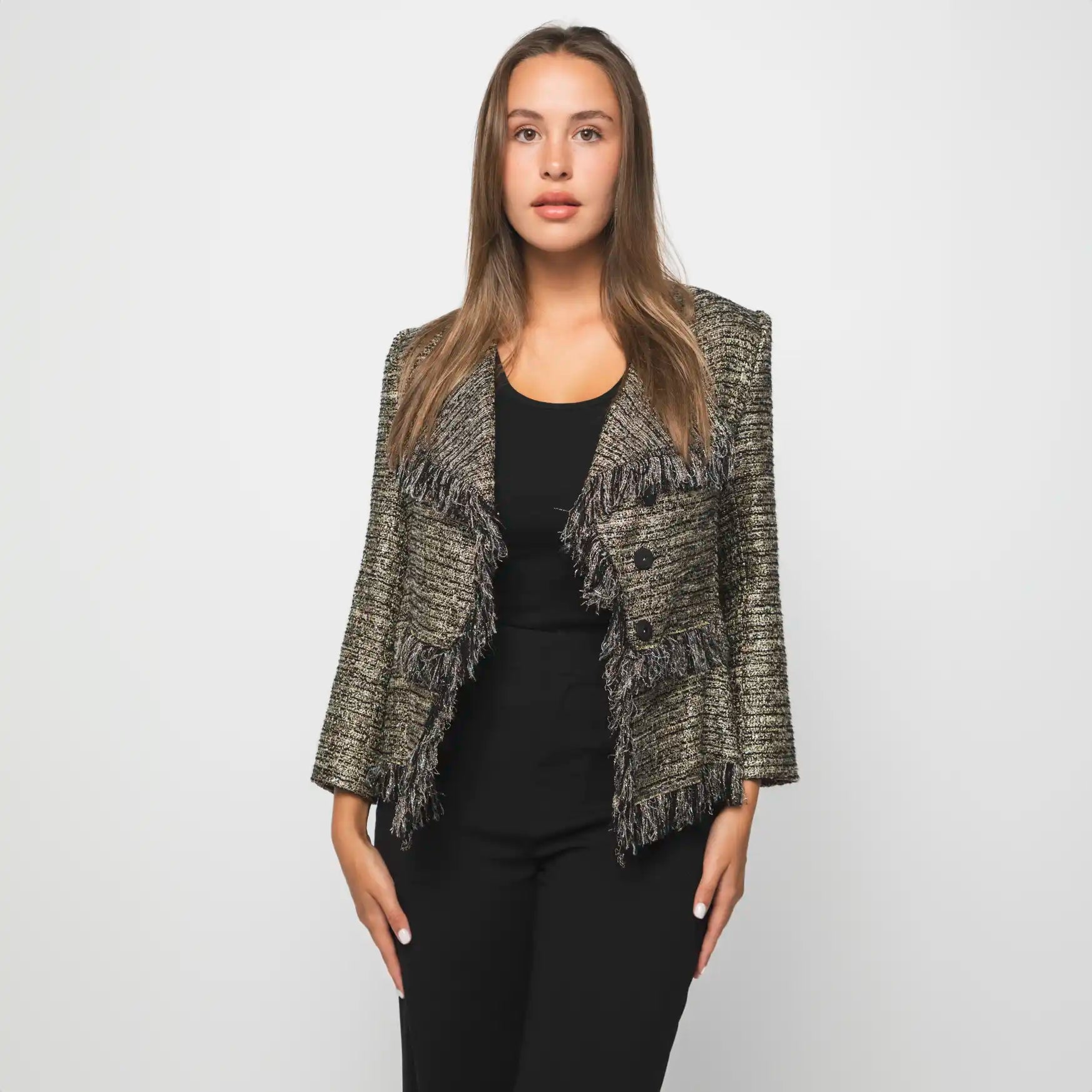 Blazer negro y dorado de Chloé de segunda mano . Haz una declaración con este blazer negro y dorado de Chloé, que ofrece una combinación perfecta de elegancia y audacia, ideal para quienes desean destacarse con estilo.