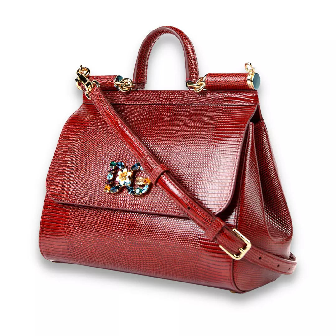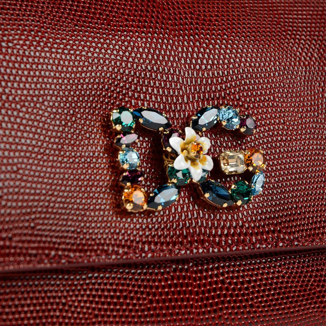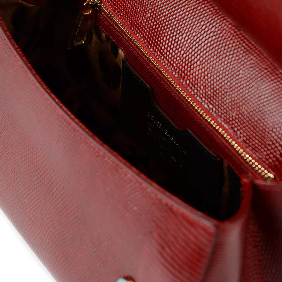 Bolso Satchel Rojo DOLCE & GABBANA Stampa Iguana Crystal Medium Miss Sicily, completamente nuevo. Incluye una cadena larga extraíble para llevarla cruzada y un espejo de cortesía en su interior.
