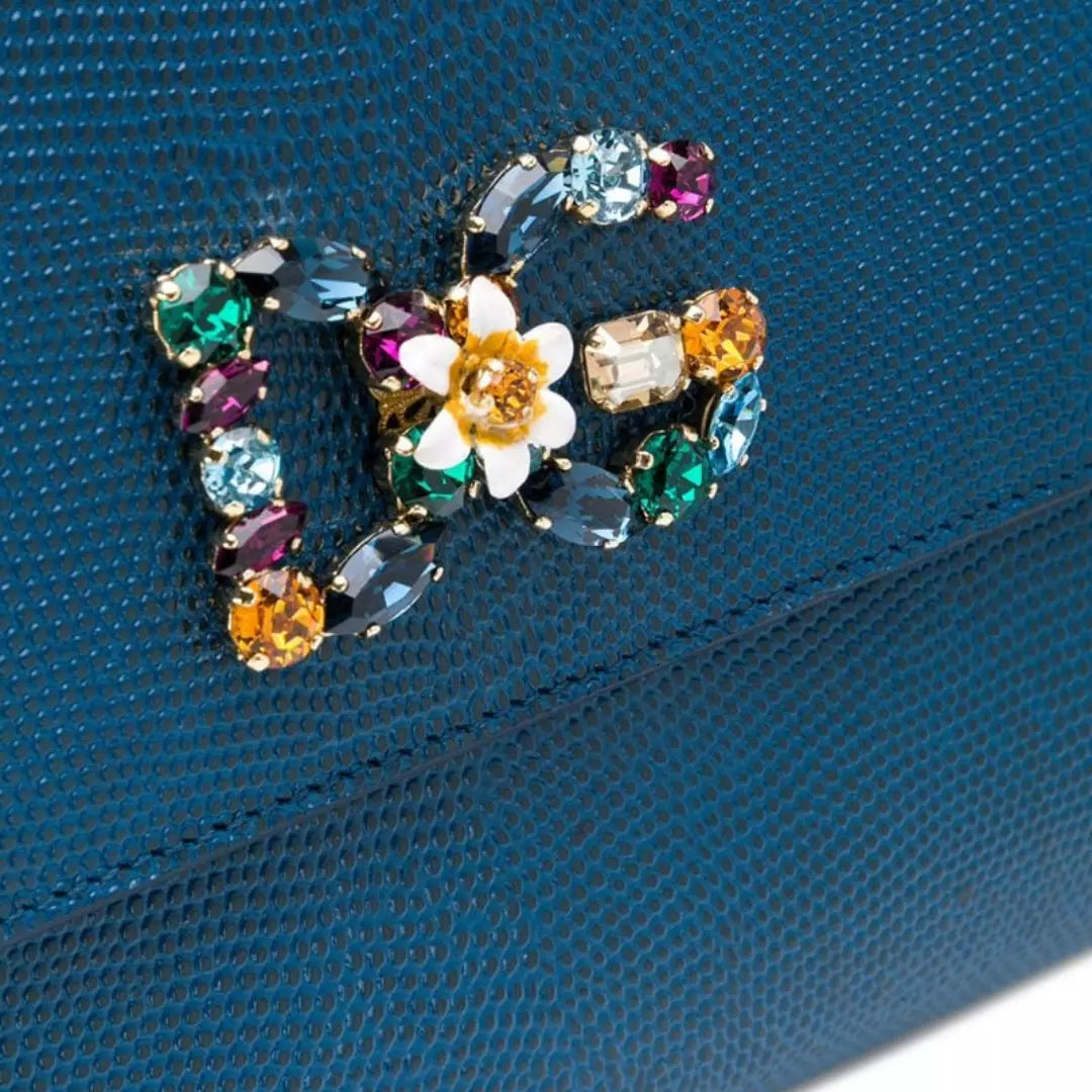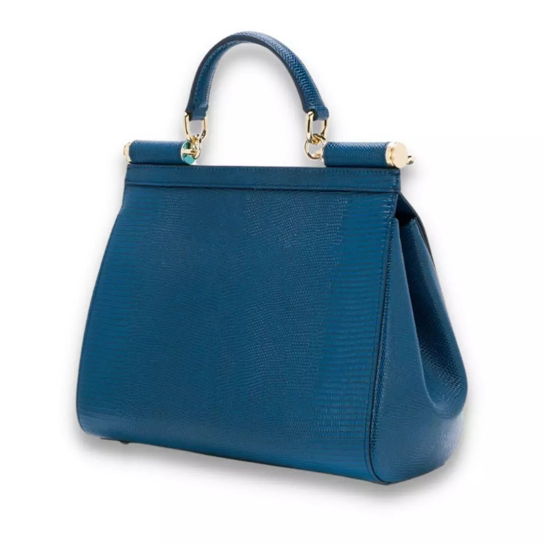 Bolso Satchel mediano Miss Sicily azul DOLCE & GABBANA Stampa Iguana Crystal, completamente nuevo. Incluye una cadena larga extraíble para llevarla cruzada y un espejo de cortesía en su interior.