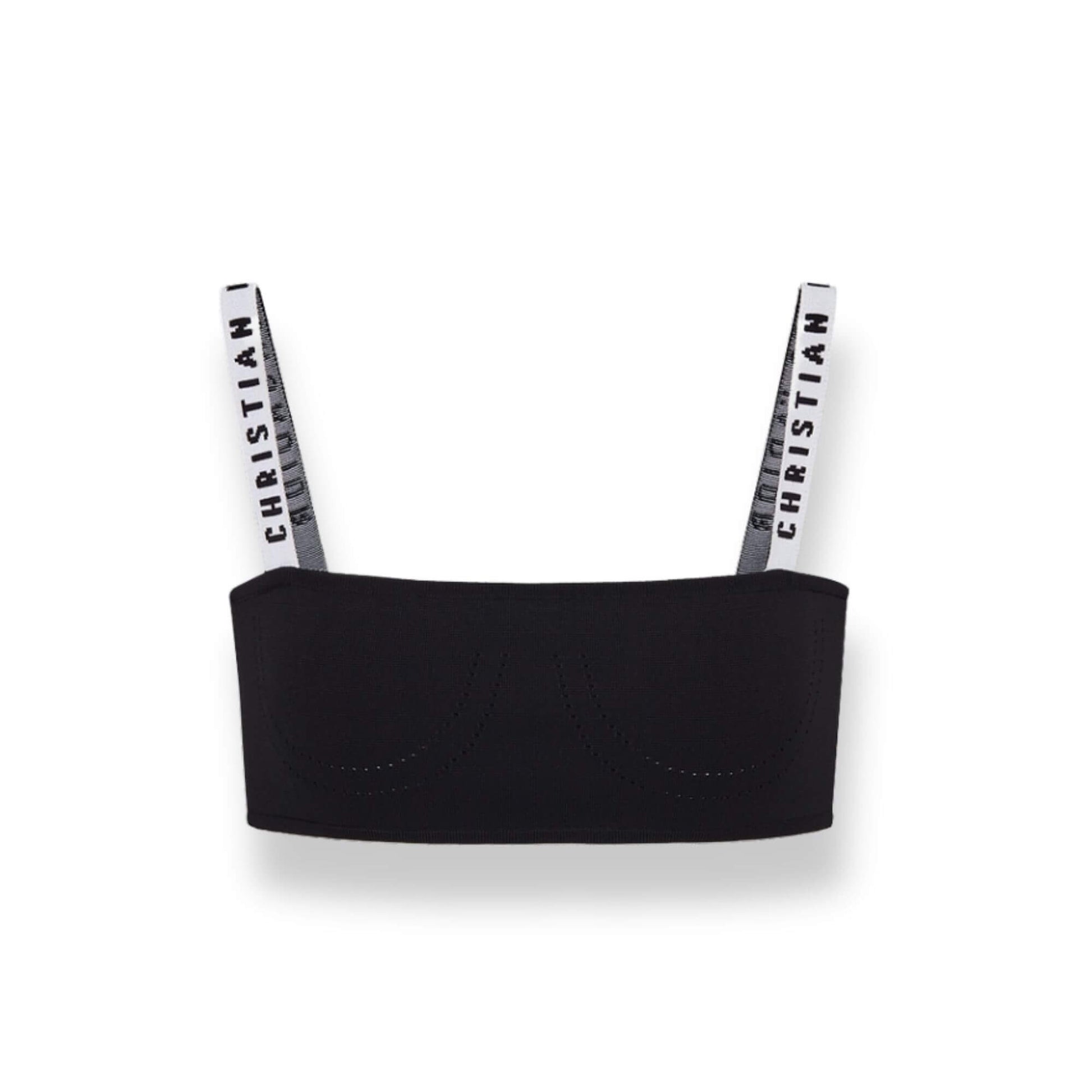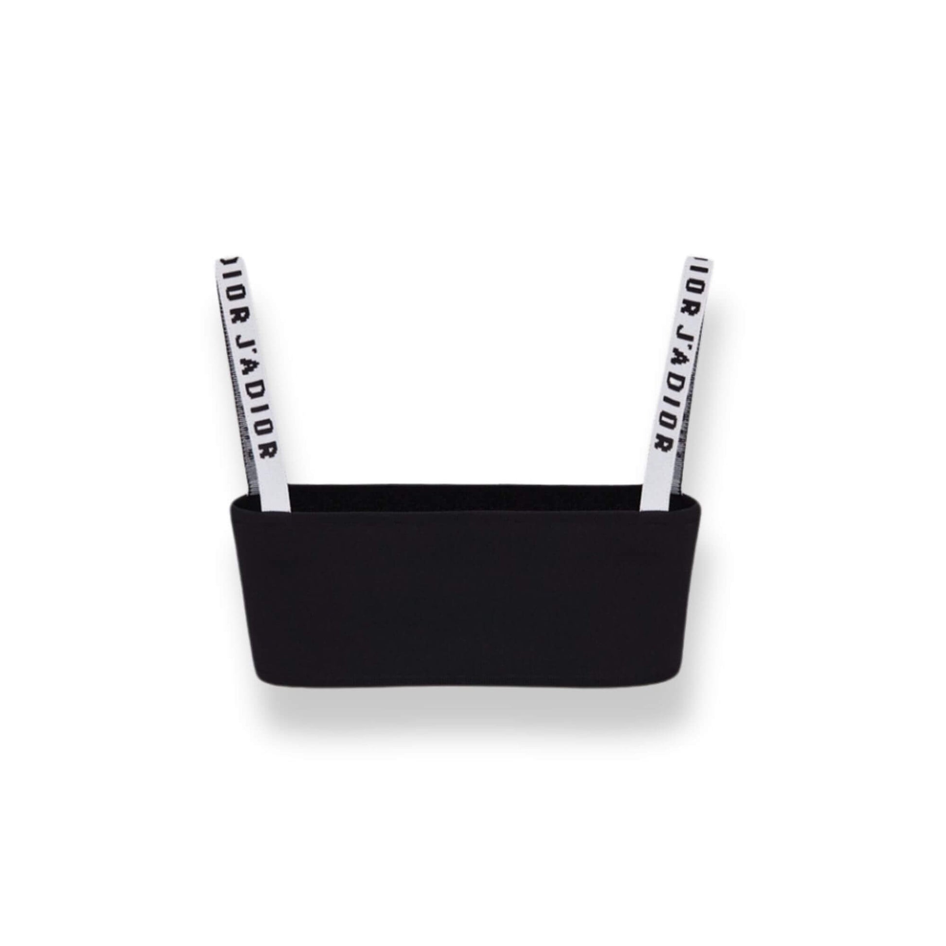 Este NUEVO bralette de Christian Dior está confeccionado en viscosa elástica negra. Los tirantes lucen la firma «Christian Dior J'Adior», que le aporta un toque deportivo, combinado con su elegancia y modernidad.