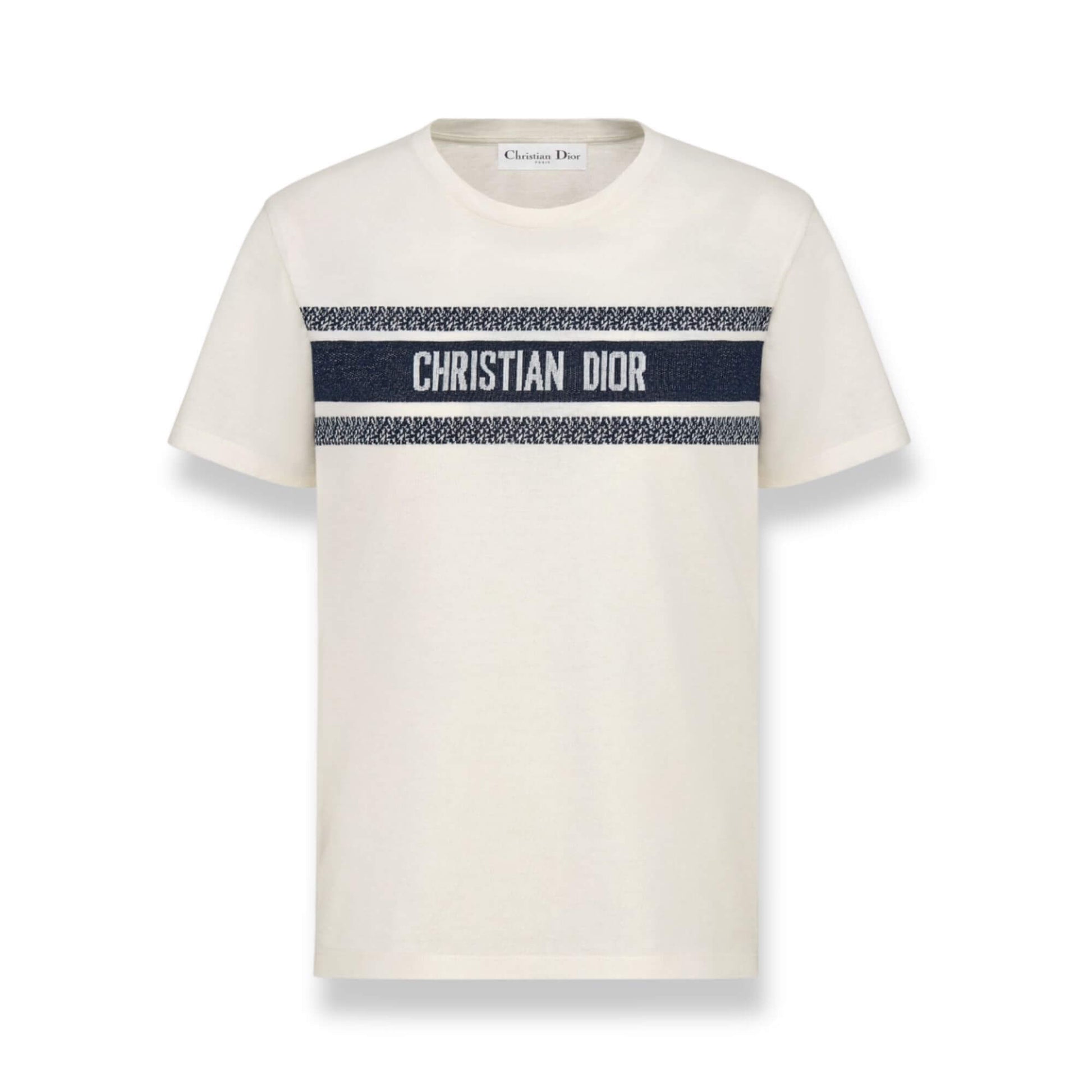 Esta NUEVA camiseta de Christian Dior es un clásico de la marca. Su sencillez y elegancia realzan cualquier look. Está confeccionada en 100 % algodón y combina tonos blanco y azul oscuro.