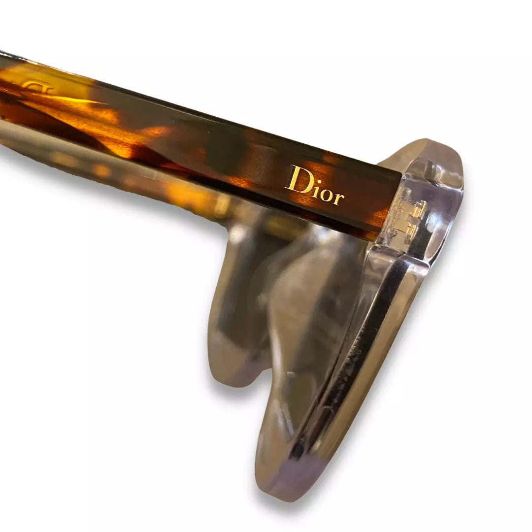 Estas gafas de sol Christian Dior Mania 1 de segunda mano están confeccionadas en acetato con estampado carey y diseñadas con un borde dorado en la parte superior. Están en muy buen estado.