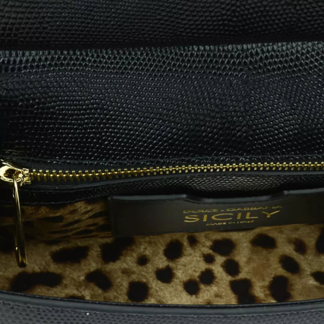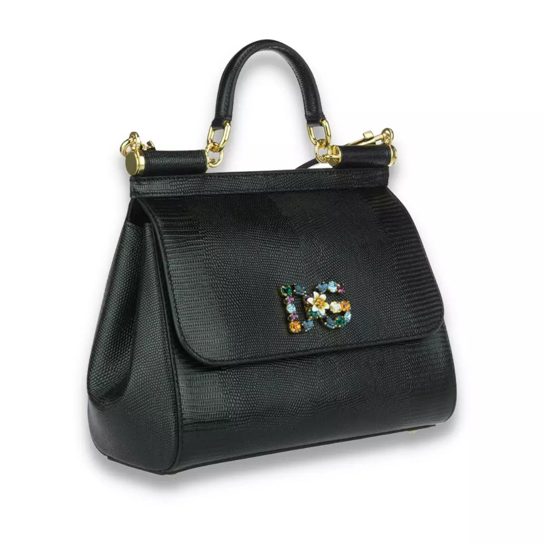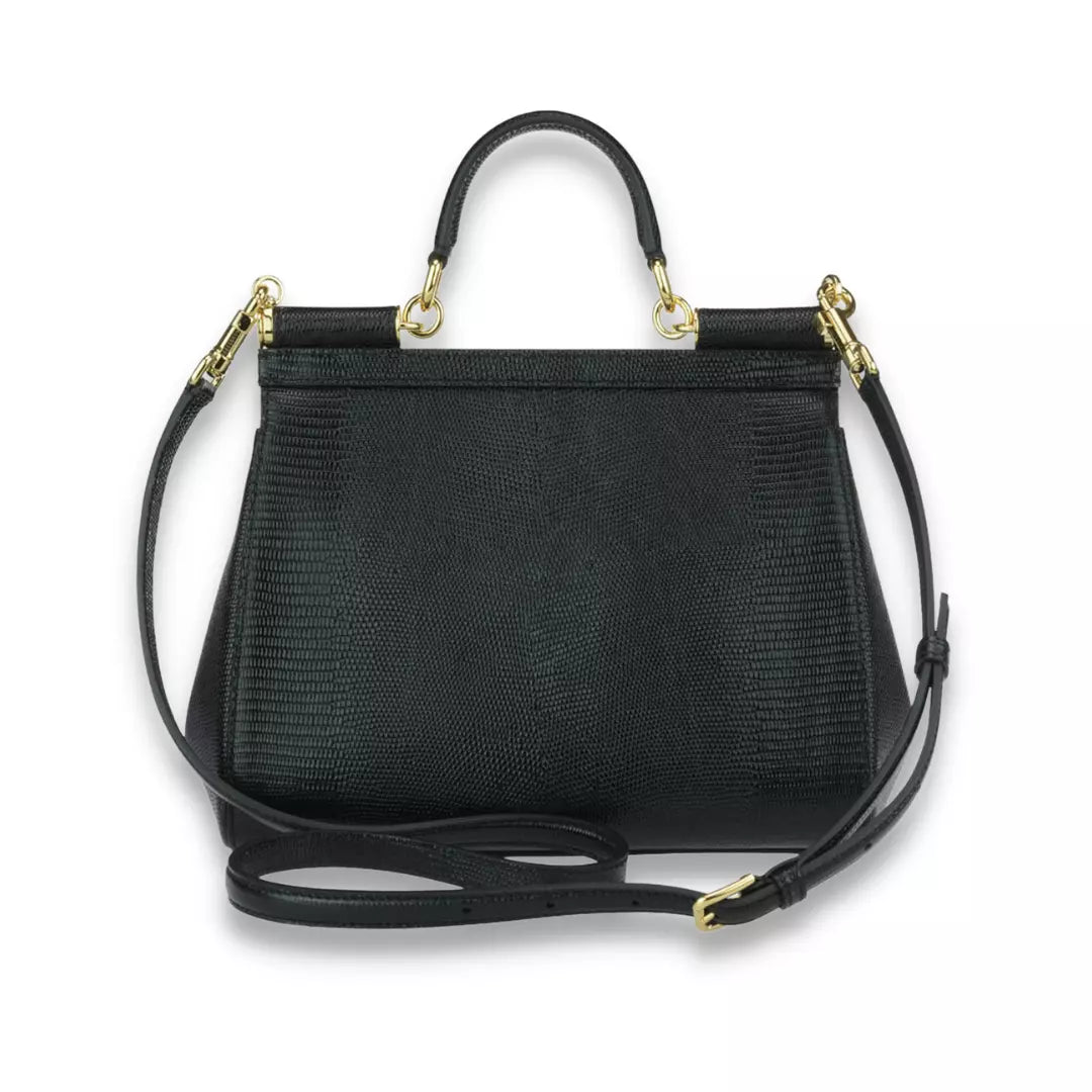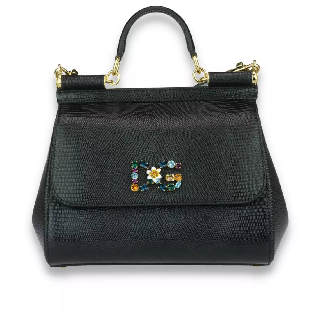 Bolso DOLCE & GABBANA Stampa Iguana Crystal Medium Miss Sicily Satchel Negro, completamente nuevo. Incluye una cadena larga extraíble para llevarla cruzada y un espejo de cortesía en su interior.