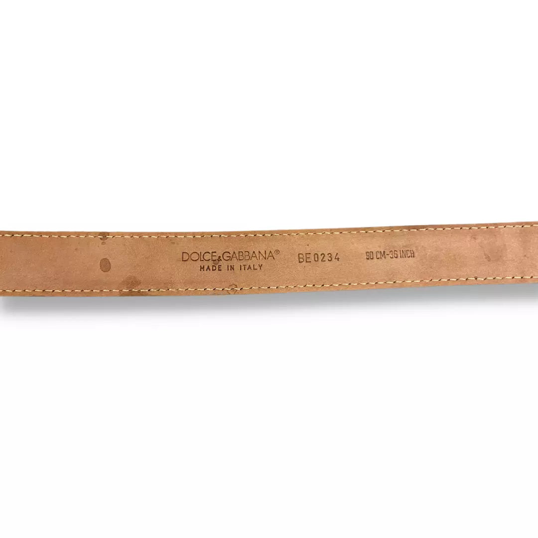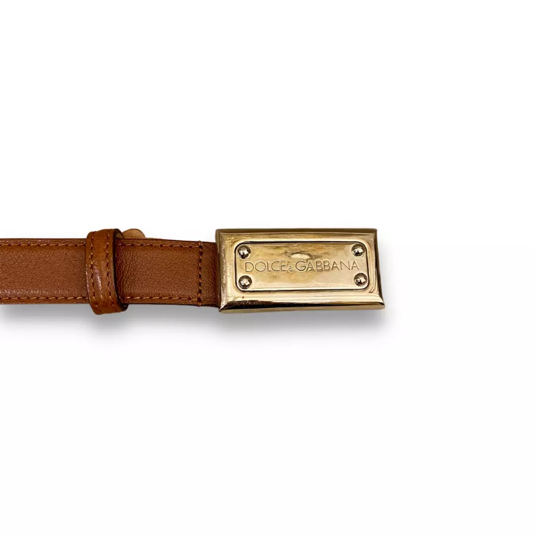 Cinturón Dolce & Gabbana de piel marrón con hebilla y placa del logotipo: Fabricado en suave piel de becerro, este cinturón de segunda mano luce una prominente placa del logotipo, perforaciones para ajustarlo y se ofrece en muy buen estado. Realza tu estilo con esta versátil y elegante adición a tu armario.