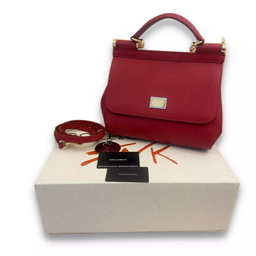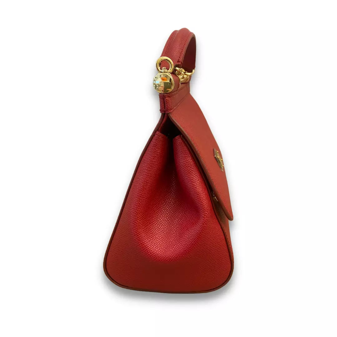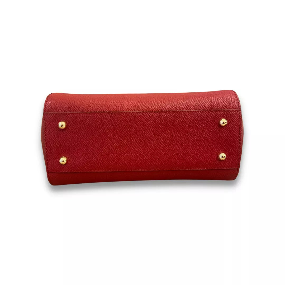 Este bolso de mano Sicily de cuero rojo de Dolce & Gabbana usado, con herrajes dorados, se encuentra en muy buenas condiciones. Viene con una cadena cruzada larga extraíble y un espejo de cortesía en el interior del bolso.