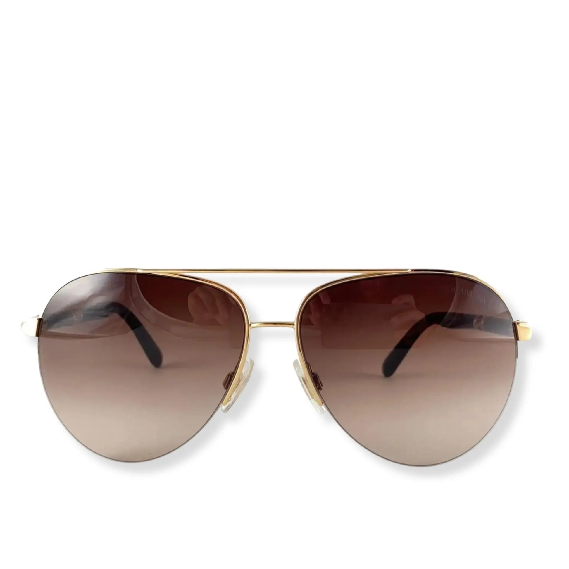 Impresionantes monturas de aviador Dolce & Gabbana en color negro con lentes marrones degradados y elegantes detalles dorados.