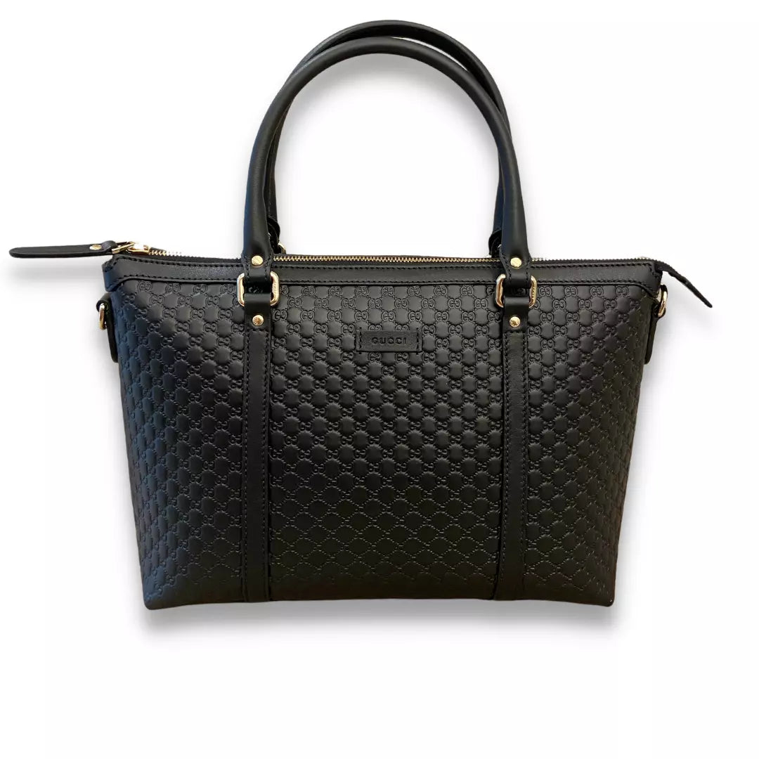 Bolso tote Gucci Abbey Microguccisimo de piel negra completamente nuevo, con detalles de micrologotipo.