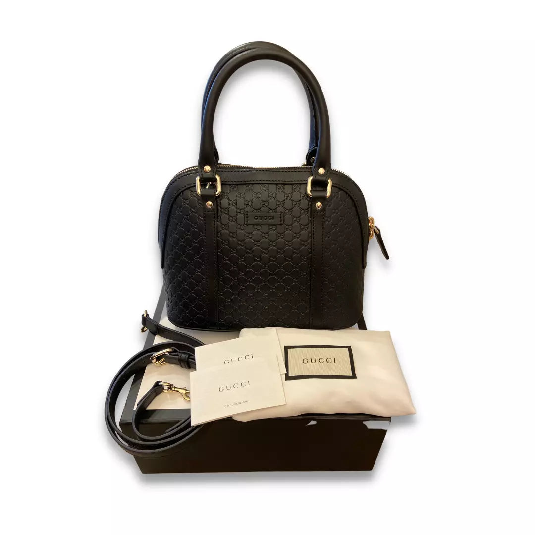 Bolso Gucci Microguccisimo de piel negra, completamente nuevo, con intrincados detalles de micrologotipo. Incluye una correa versátil como bandolera, que añade un toque de sofisticación y estilo a cualquier look.