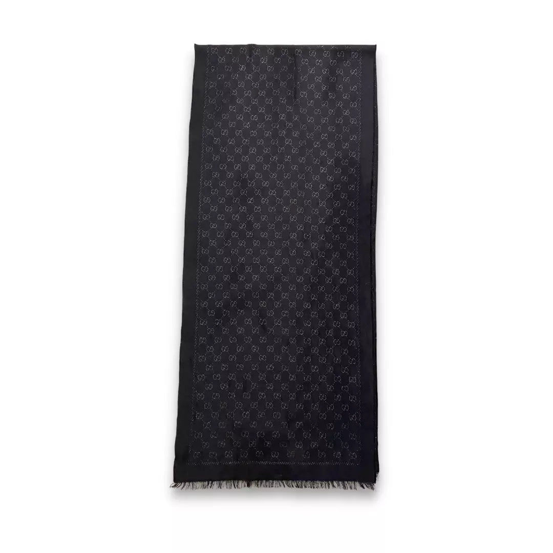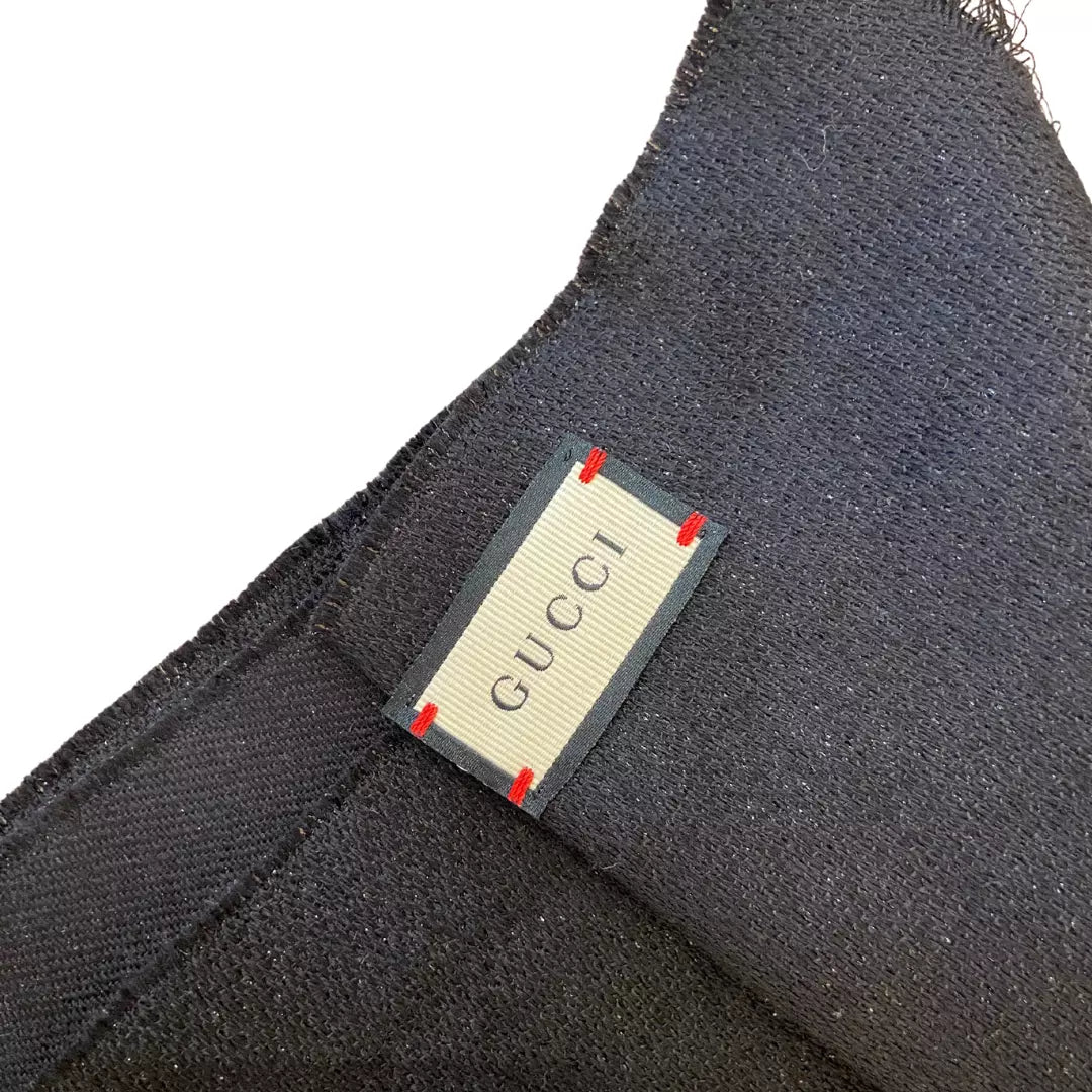 Bufanda Gucci de lana negra con detalles brillantes. En perfecto estado.