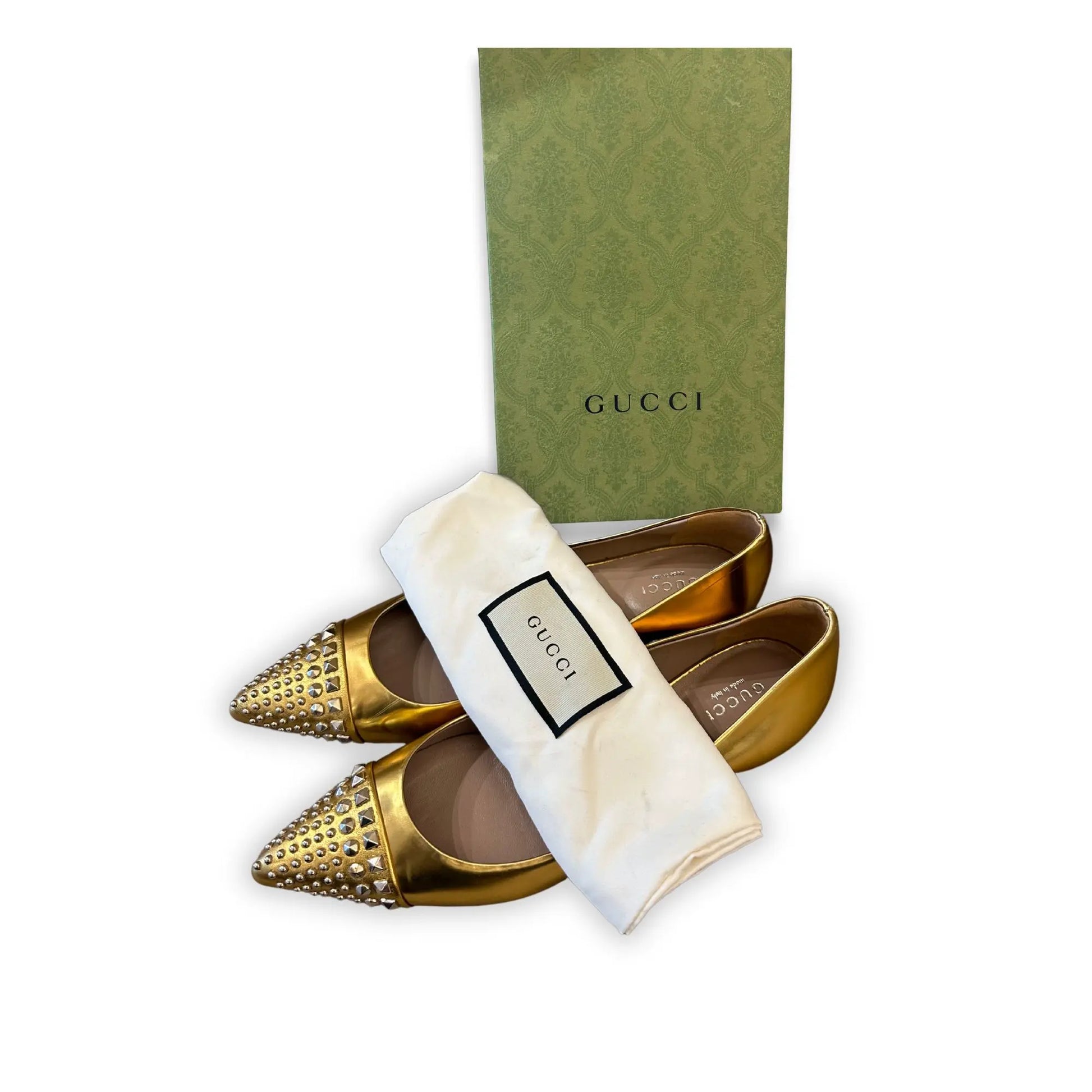 Estas bailarinas de cuero dorado de Gucci de segunda mano son una pieza imprescindible en cualquier armario.