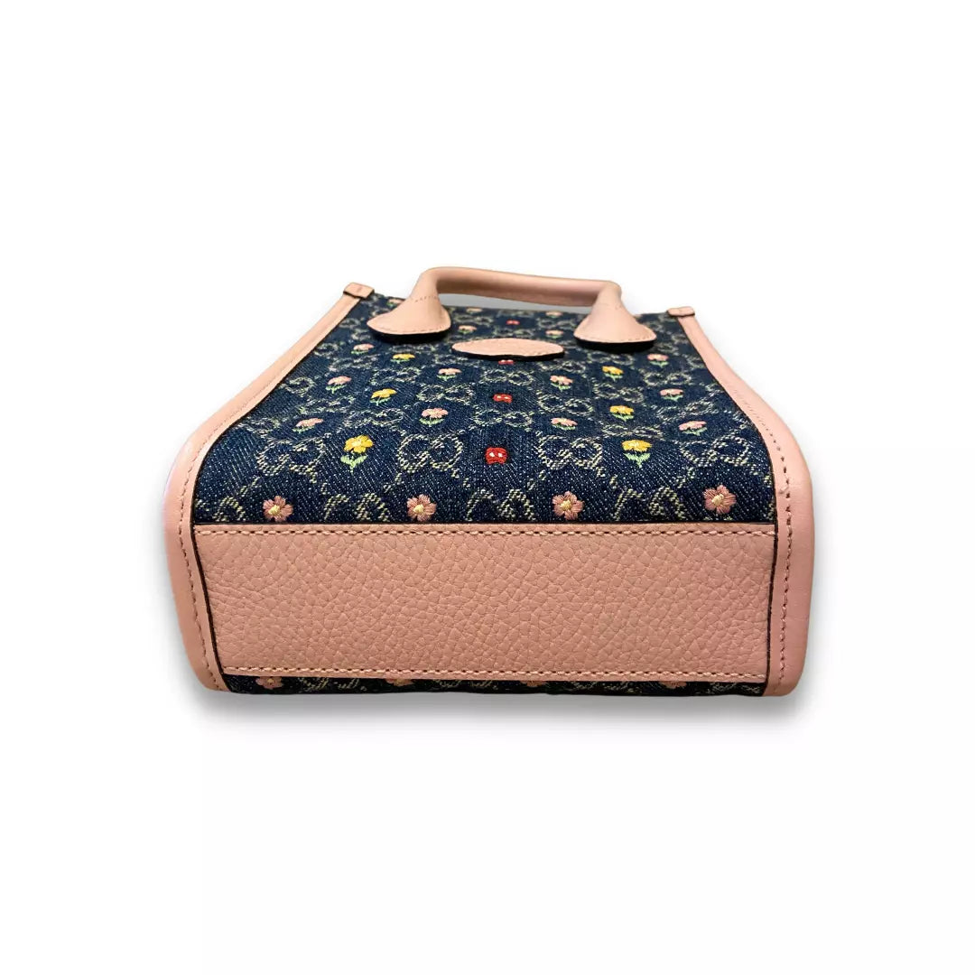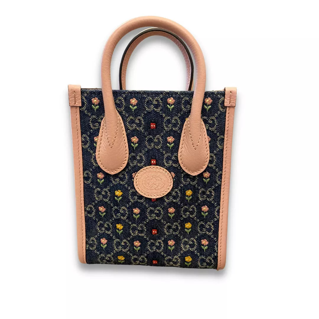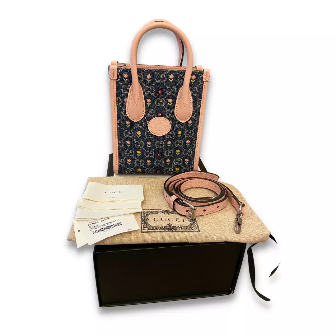 Bolso Gucci de lona rosa y denim con monograma GG completamente nuevo. Incluye una segunda correa para llevarlo como bandolera. Es una edición especial de Gucci.