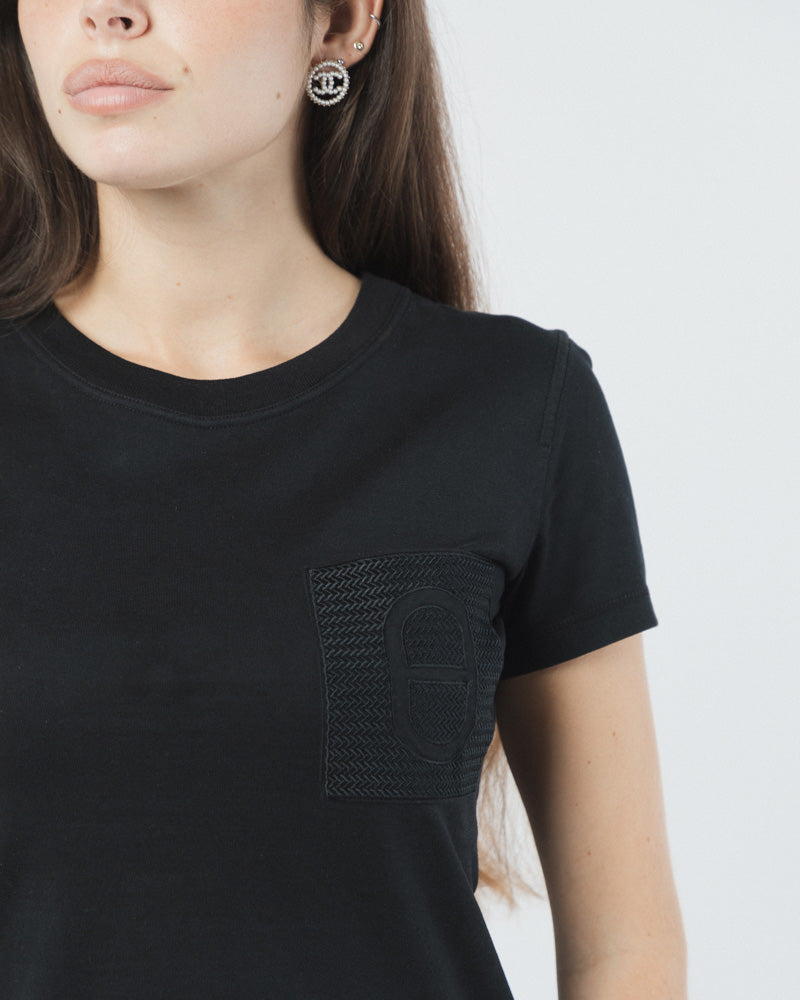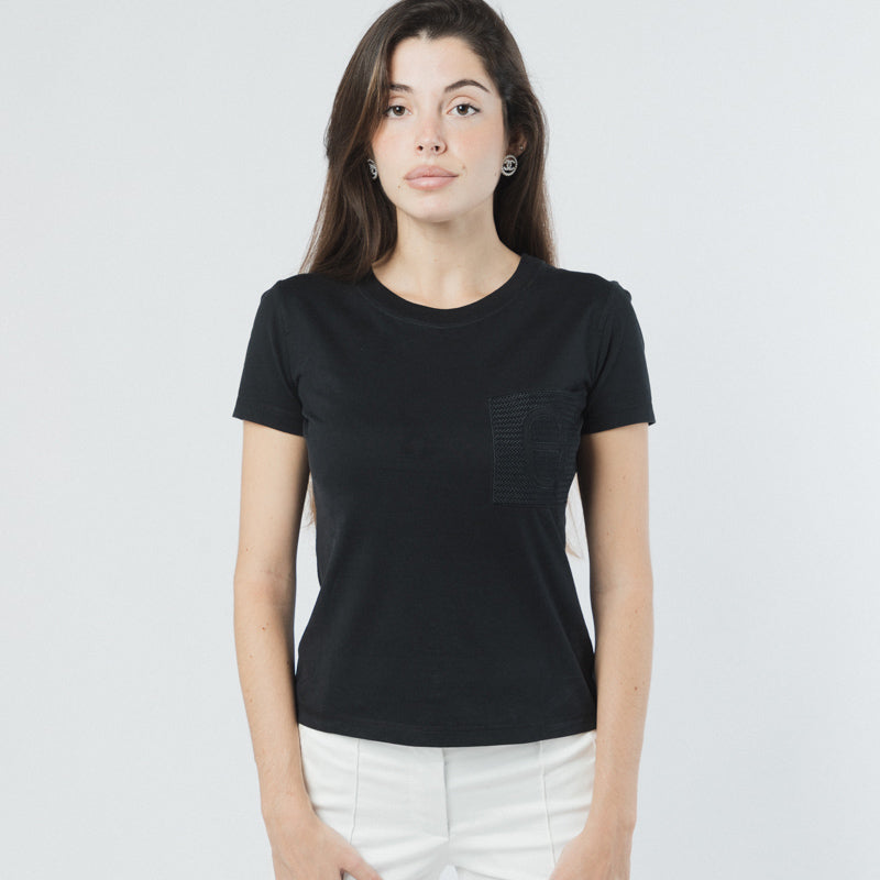 CAMISETA HERMÈS DE ALGODÓN NEGRO CON MICROBOLSILLO Y BRODÉE