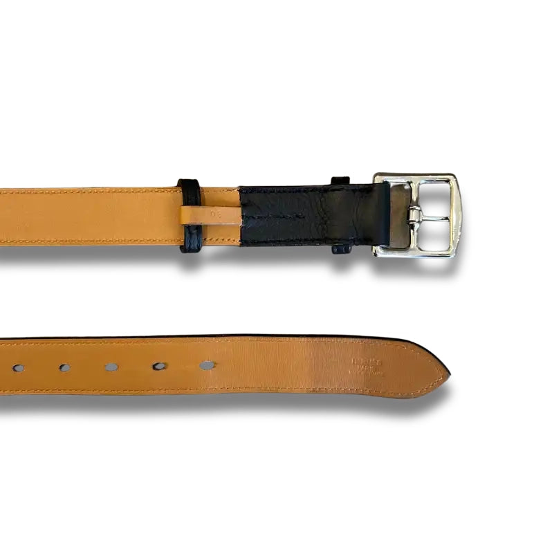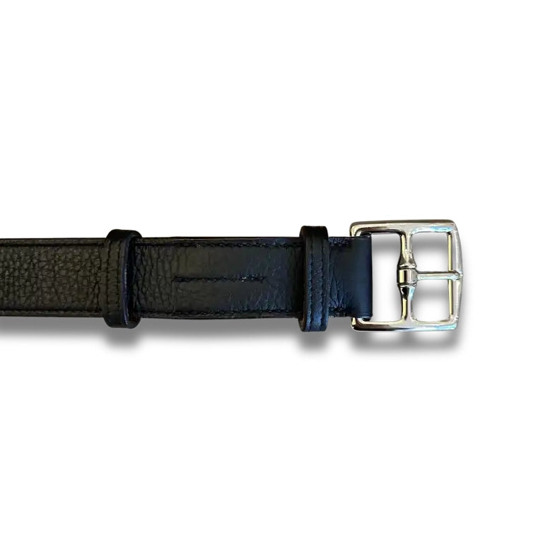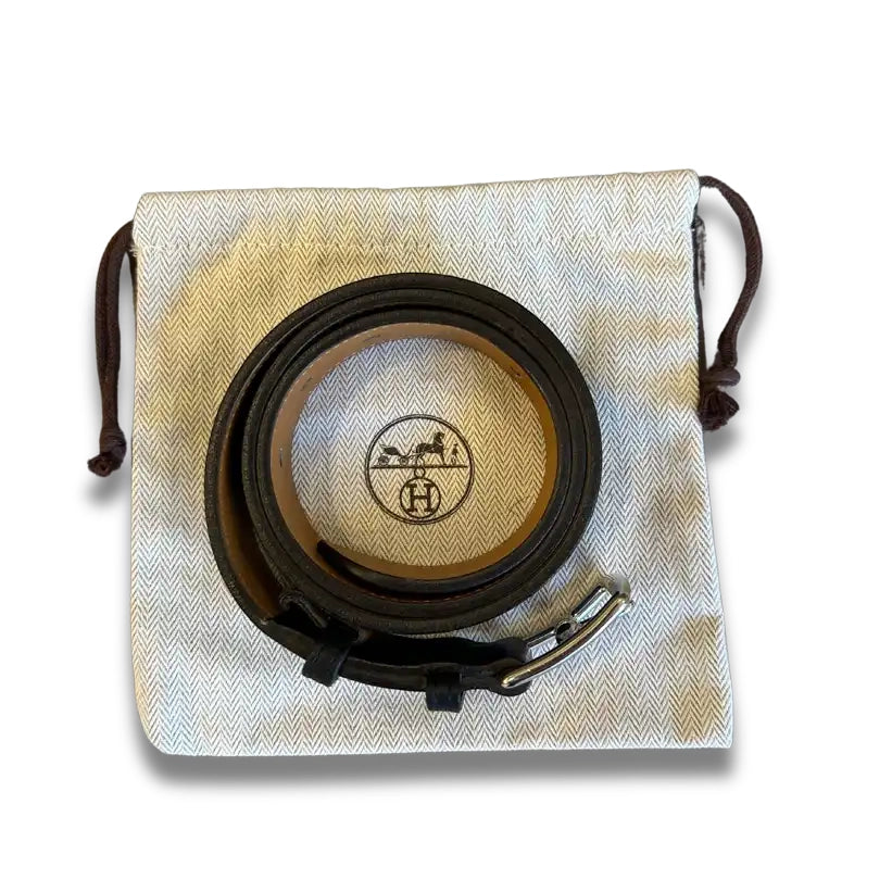 Este cinturón Hermès Étrivière 32 de segunda mano rezuma lujo atemporal. Fabricado en piel negra y rematado con una distintiva hebilla en forma de H con herrajes de paladio.