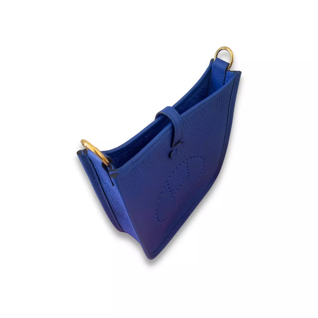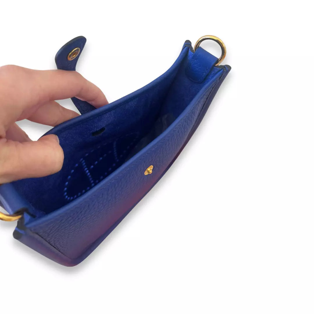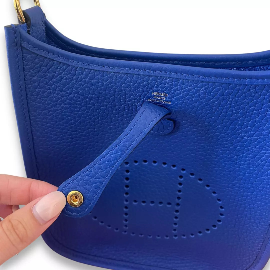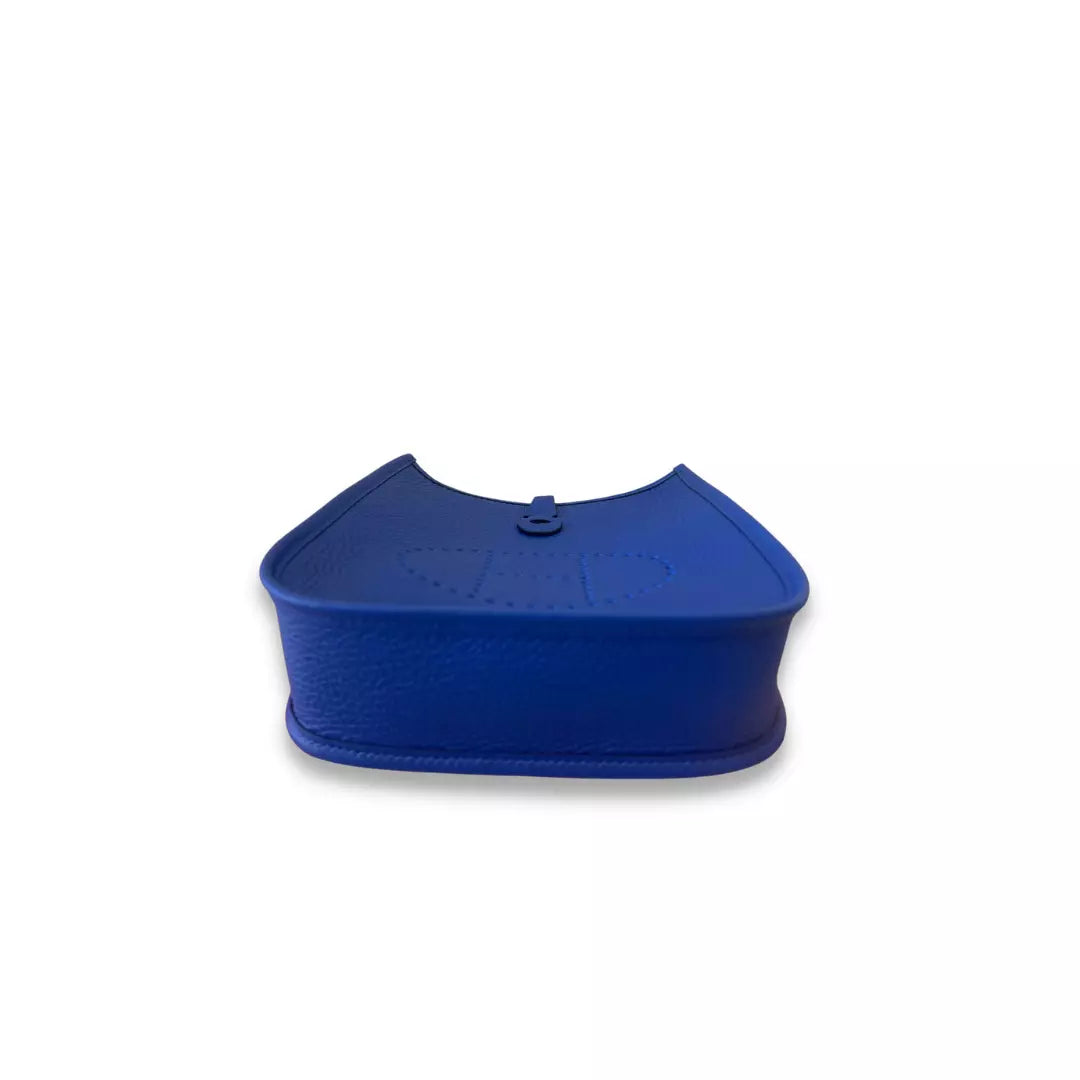 Bolso bandolera Hermès Evelyne 16 Amazone en piel Blue Royal Clemence con correa de hombro de lana azul, "H" de piel perforada, cierre con lengüeta de piel y herrajes dorados.