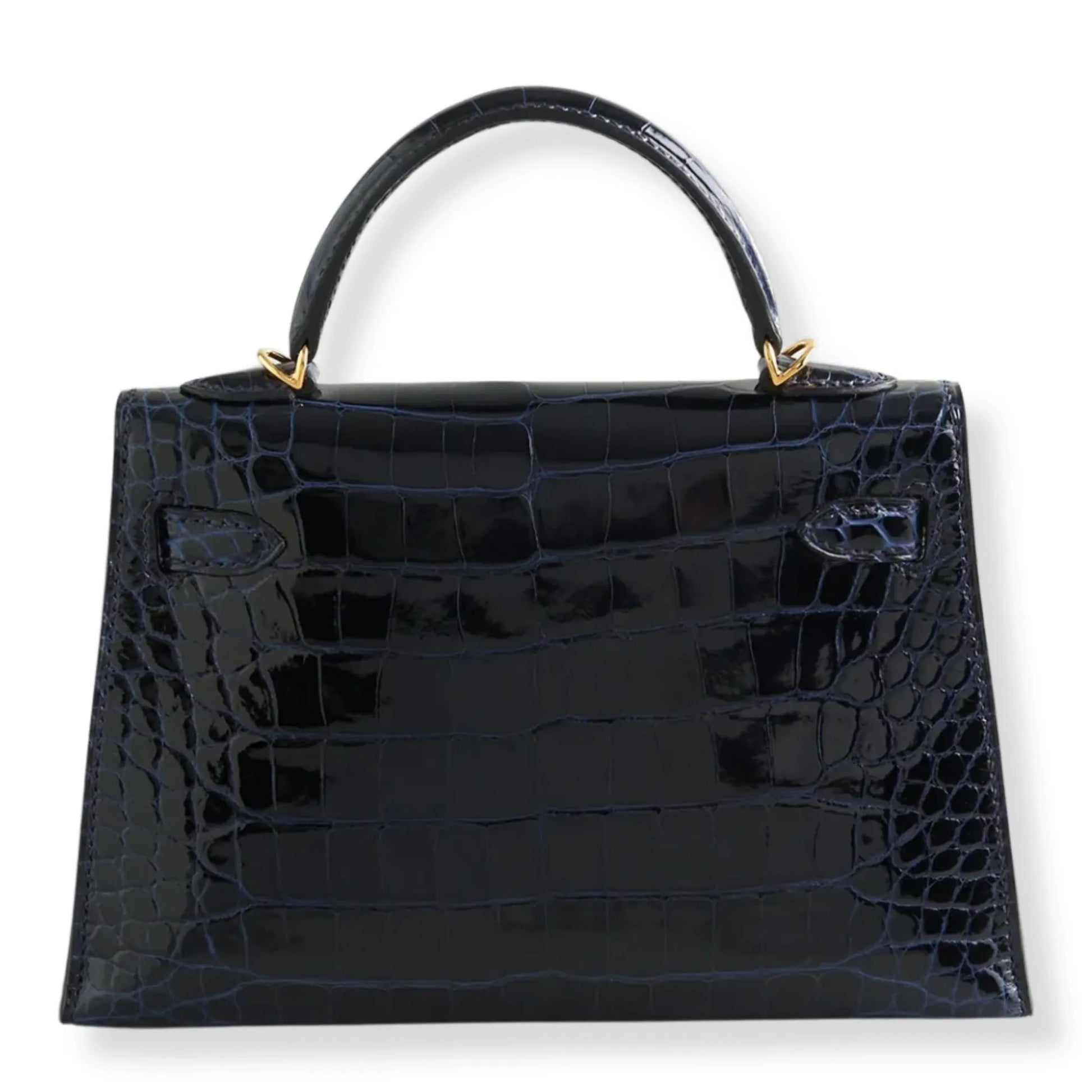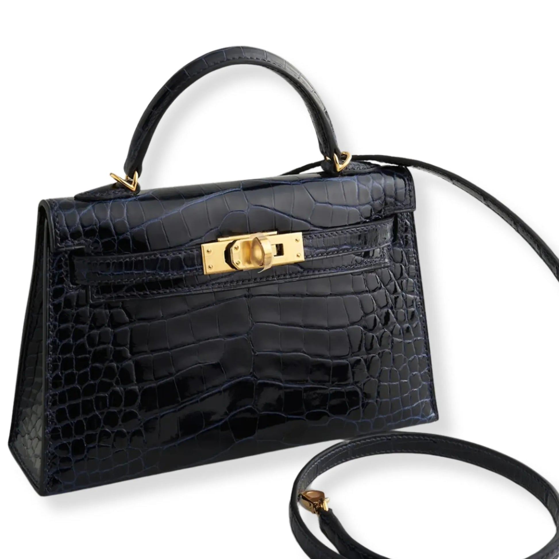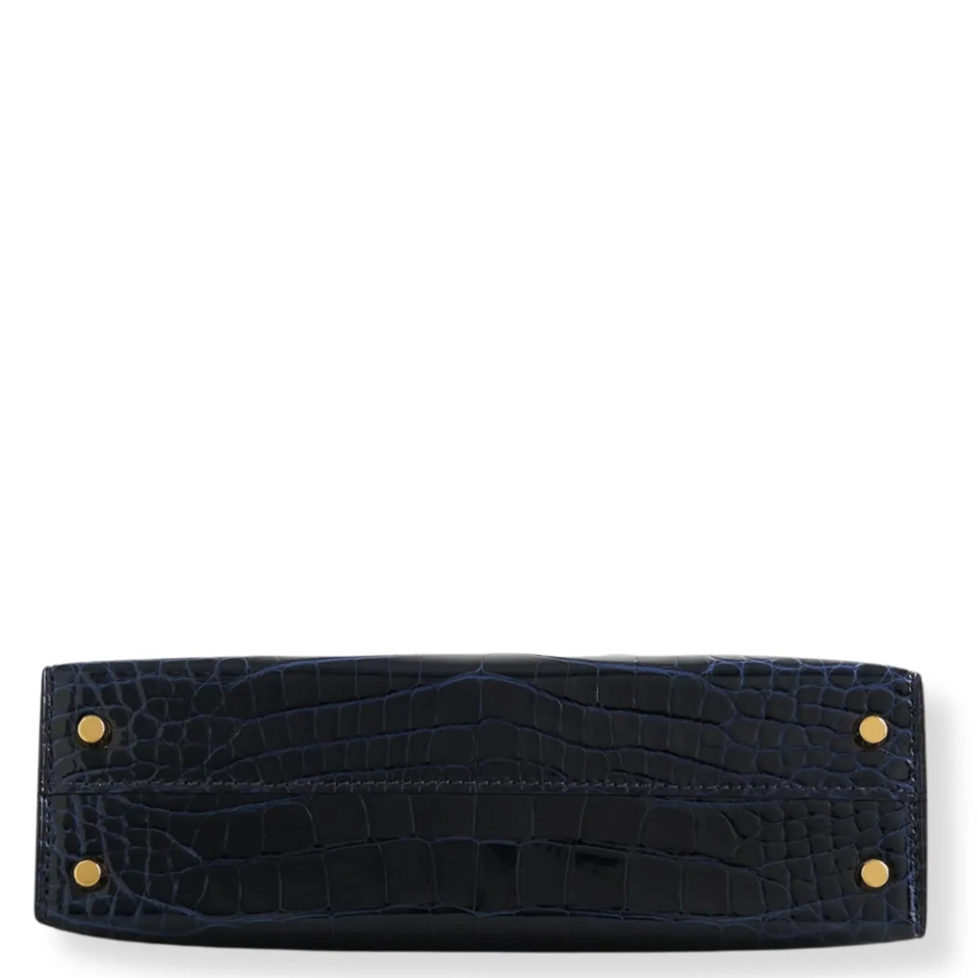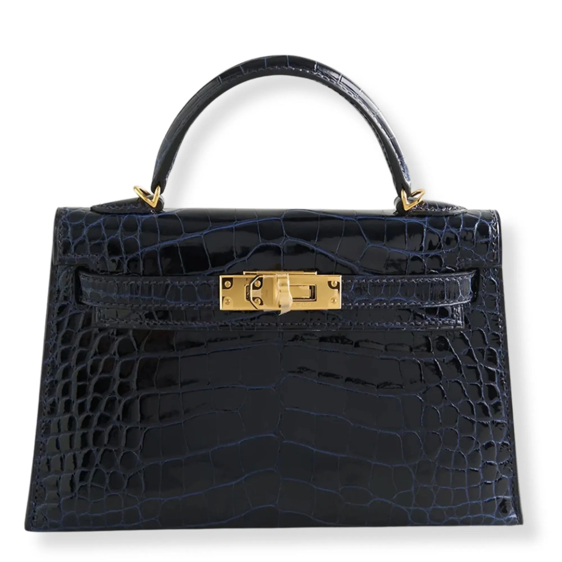 BOLSO HERMÈS MINI KELLY DE PIEL DE CAIMÁN BRILLANTE AZUL MARINO