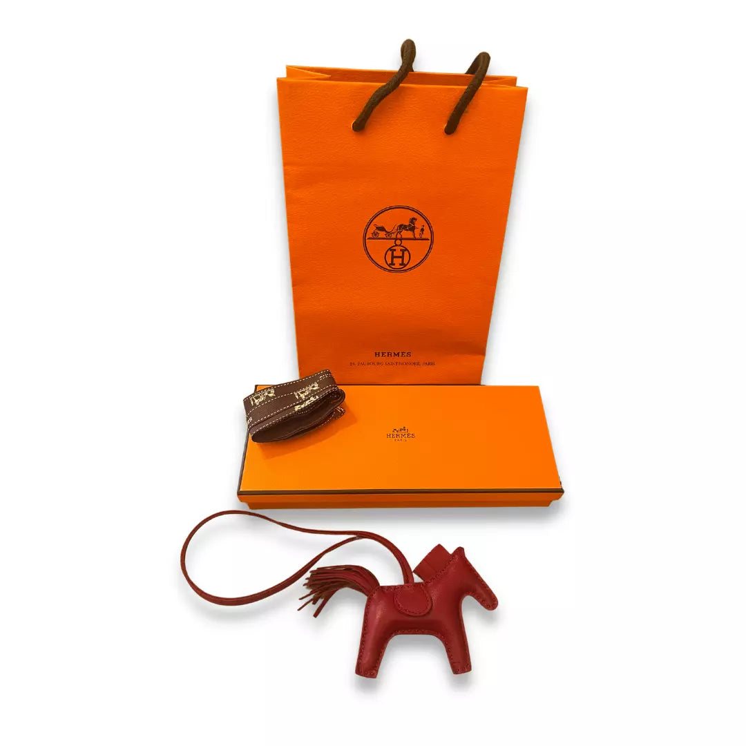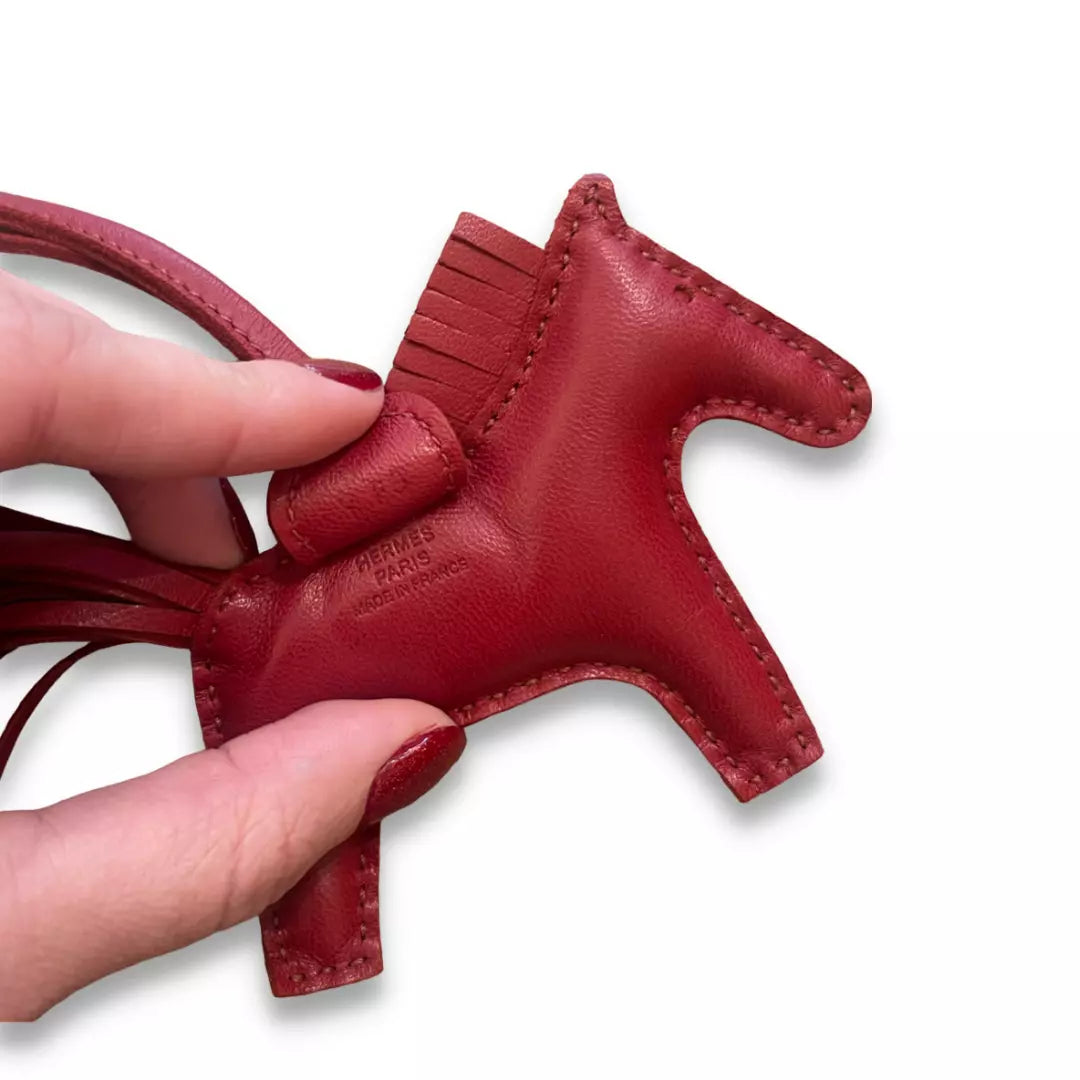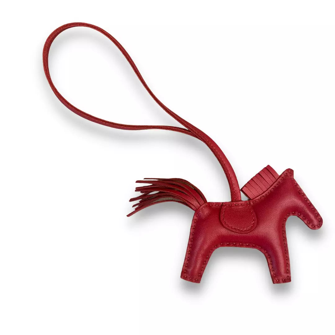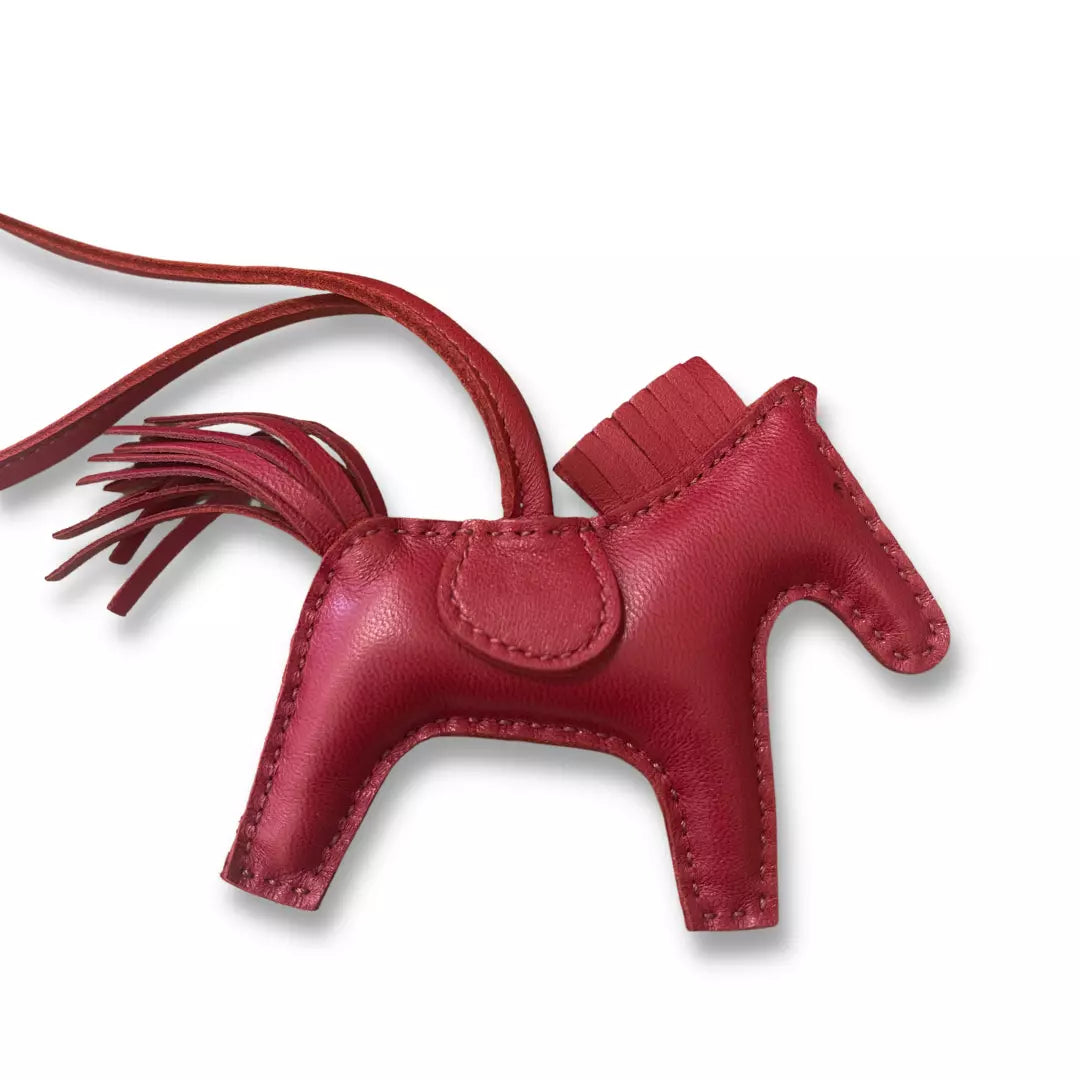 Este charm para bolso Hermès Grigri Rodeo, talla PM, está elaborado en piel de cordero Rubis Milo con crin, sillín, cola y asa a juego.