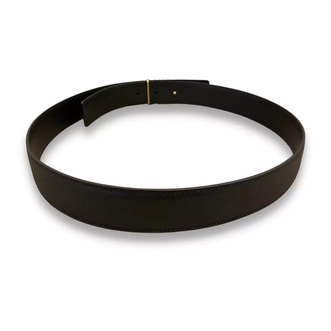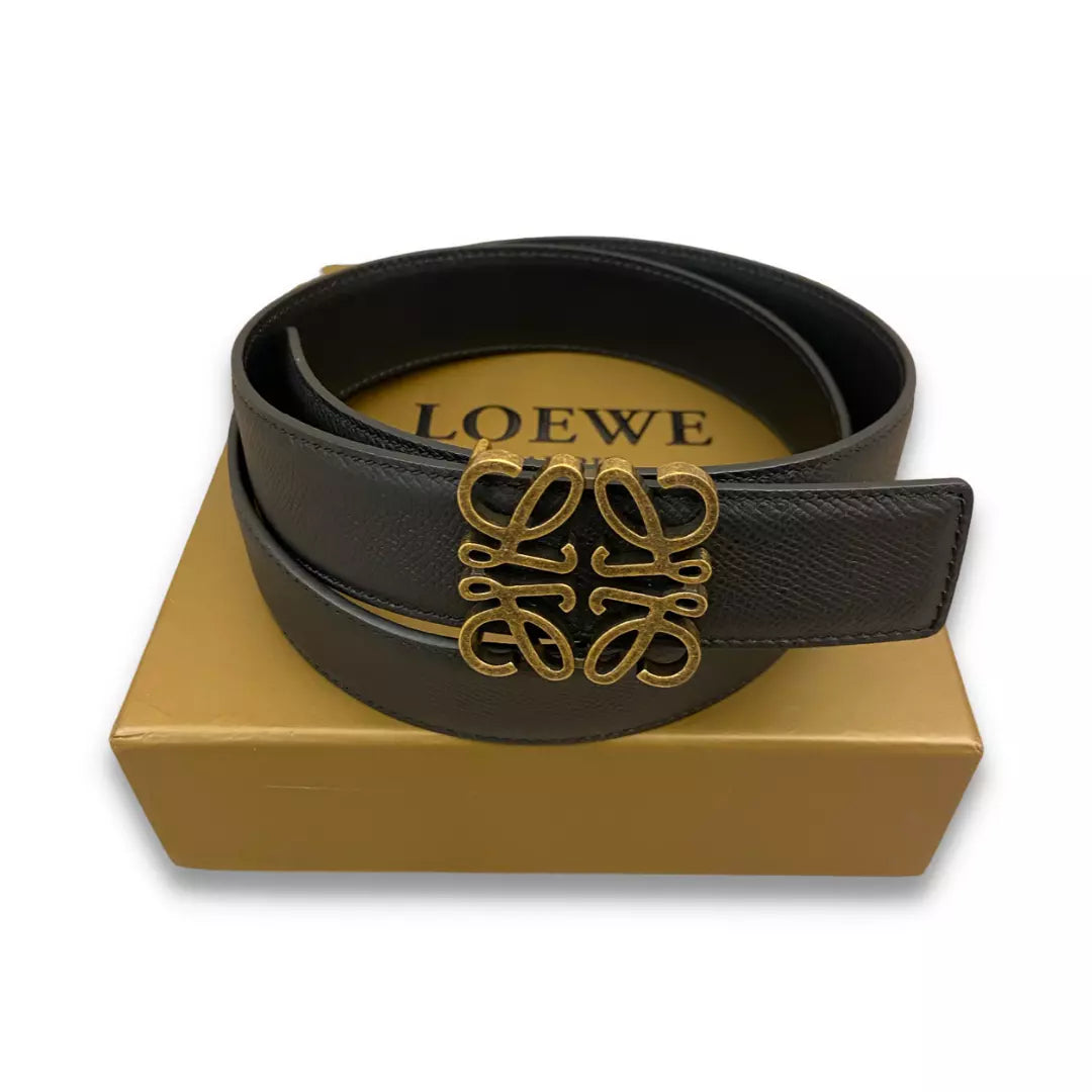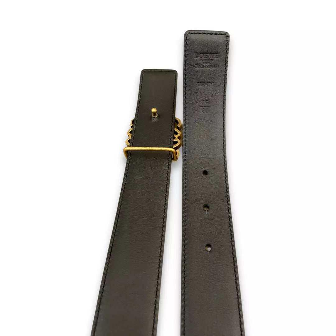 Este cinturón con anagrama de piel de becerro negra de Loewe usado, con cuero liso y metal chapado en oro/paladio, está en muy buenas condiciones.