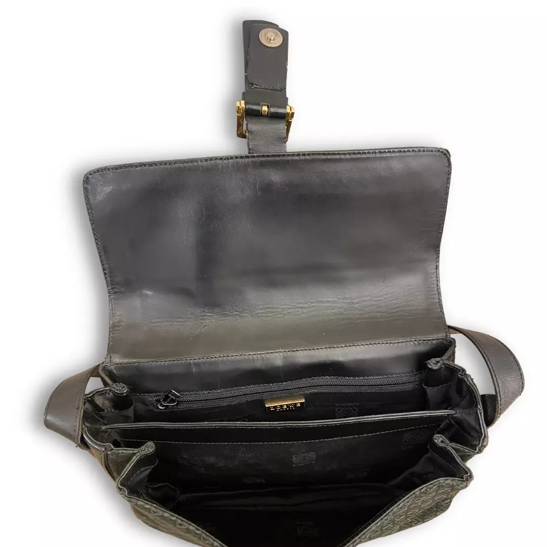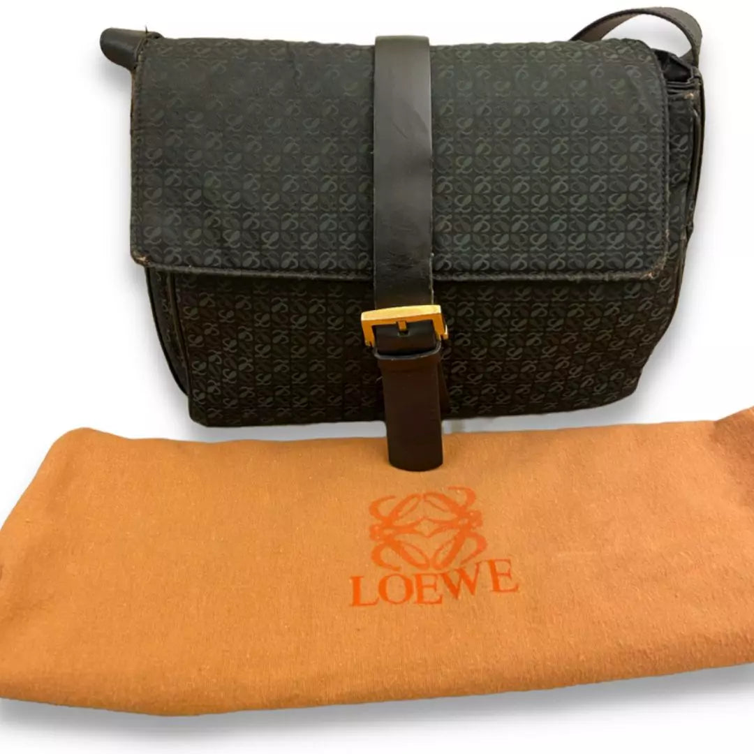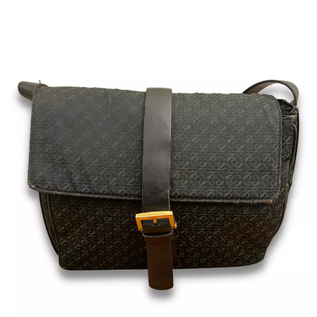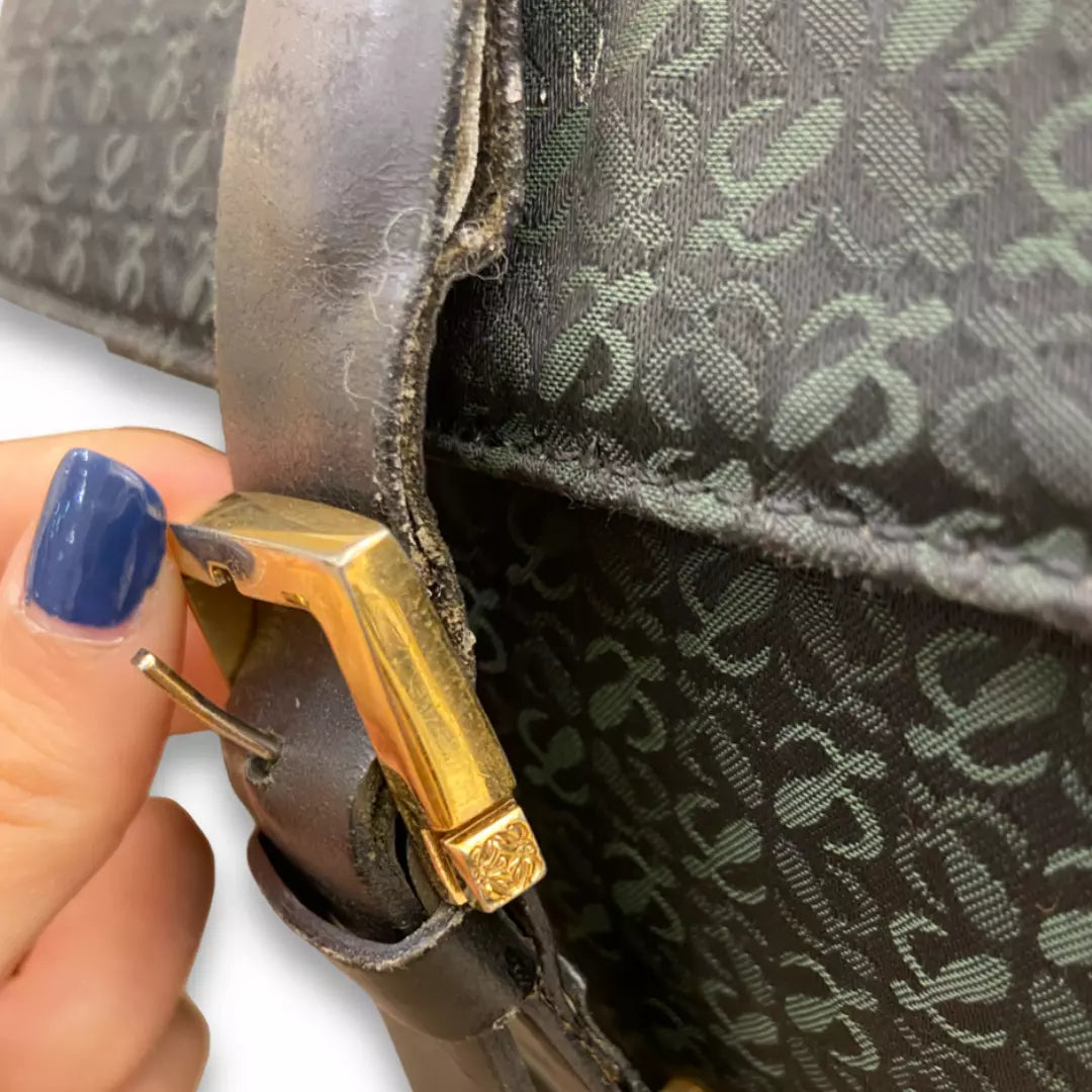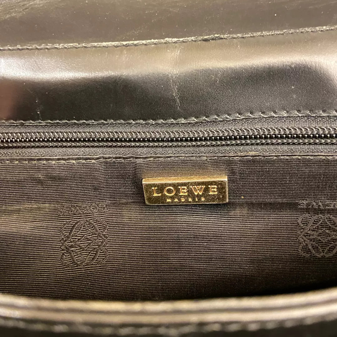 Bolso Loewe de piel negra de segunda mano, un bolso vintage en buen estado. Forro con ligeras señales de uso.