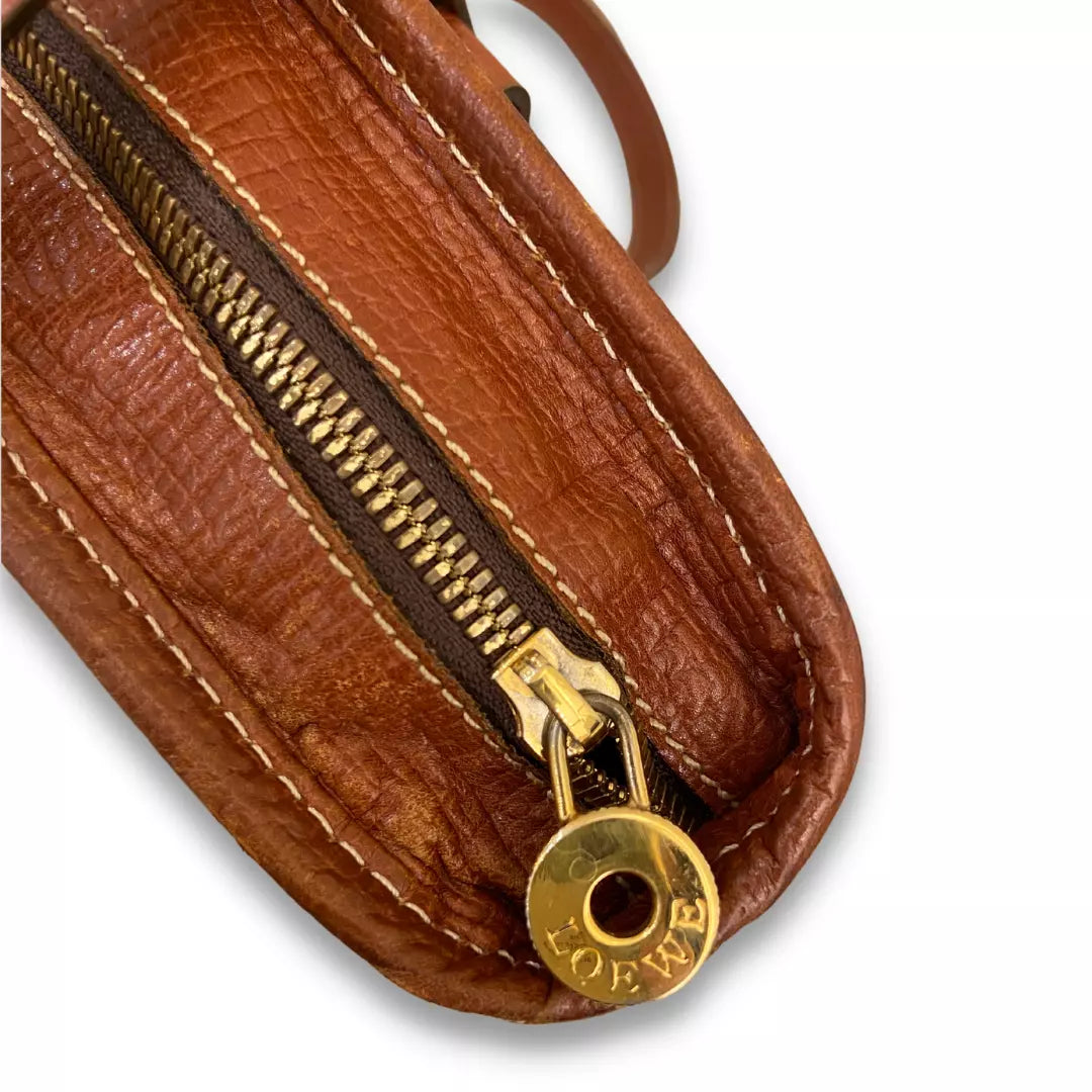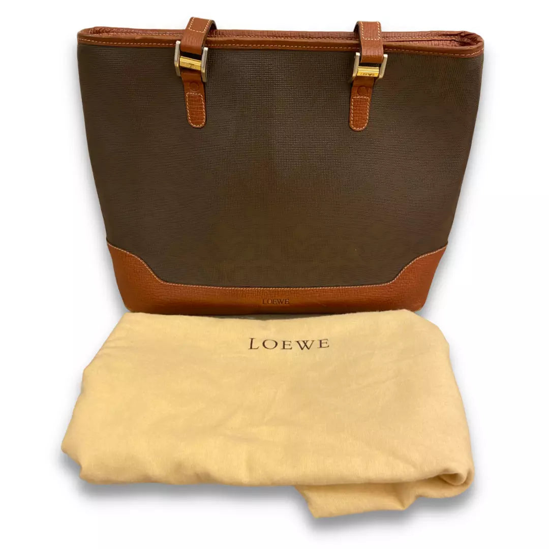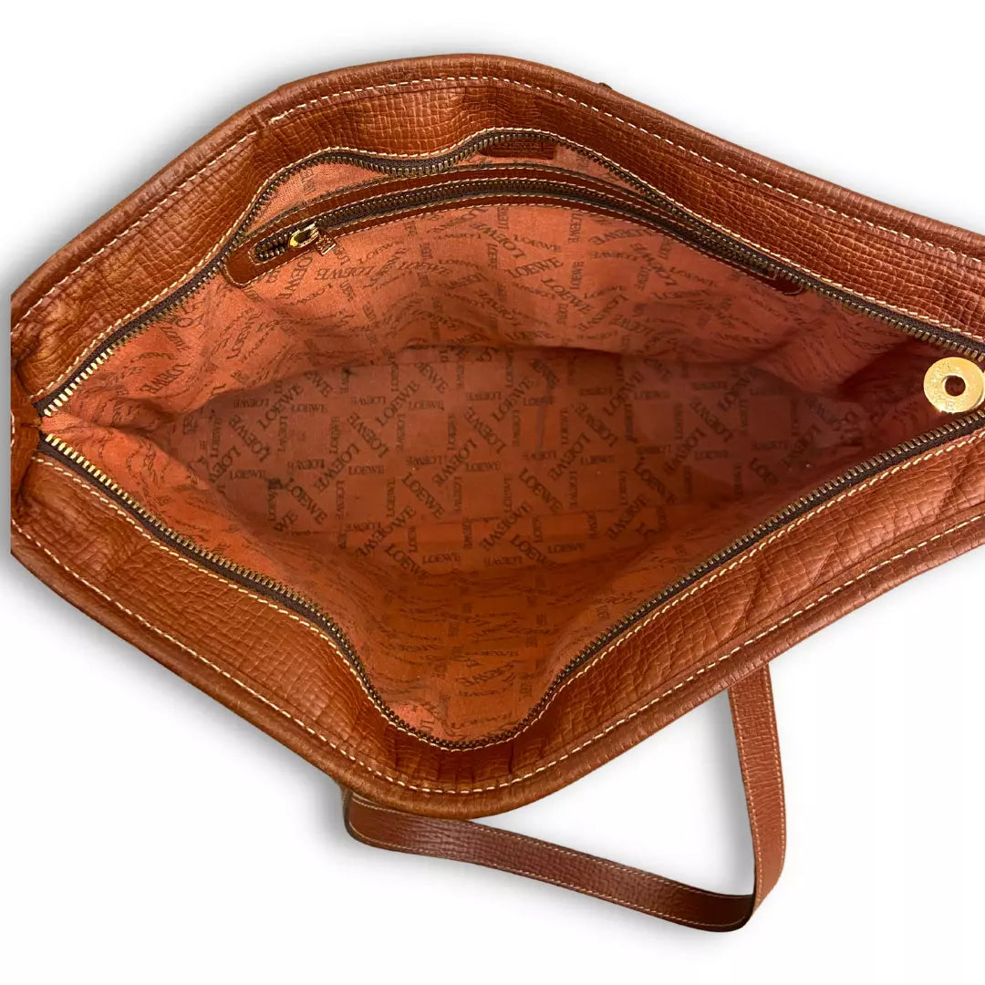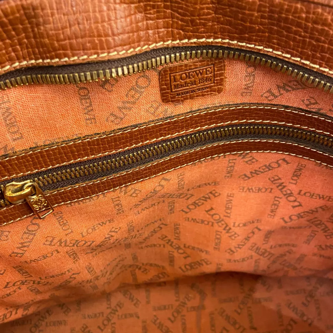 El bolso tote de cuero marrón de Loewe usado es un bolso vintage en muy buen estado. Forro con pequeños signos de uso.