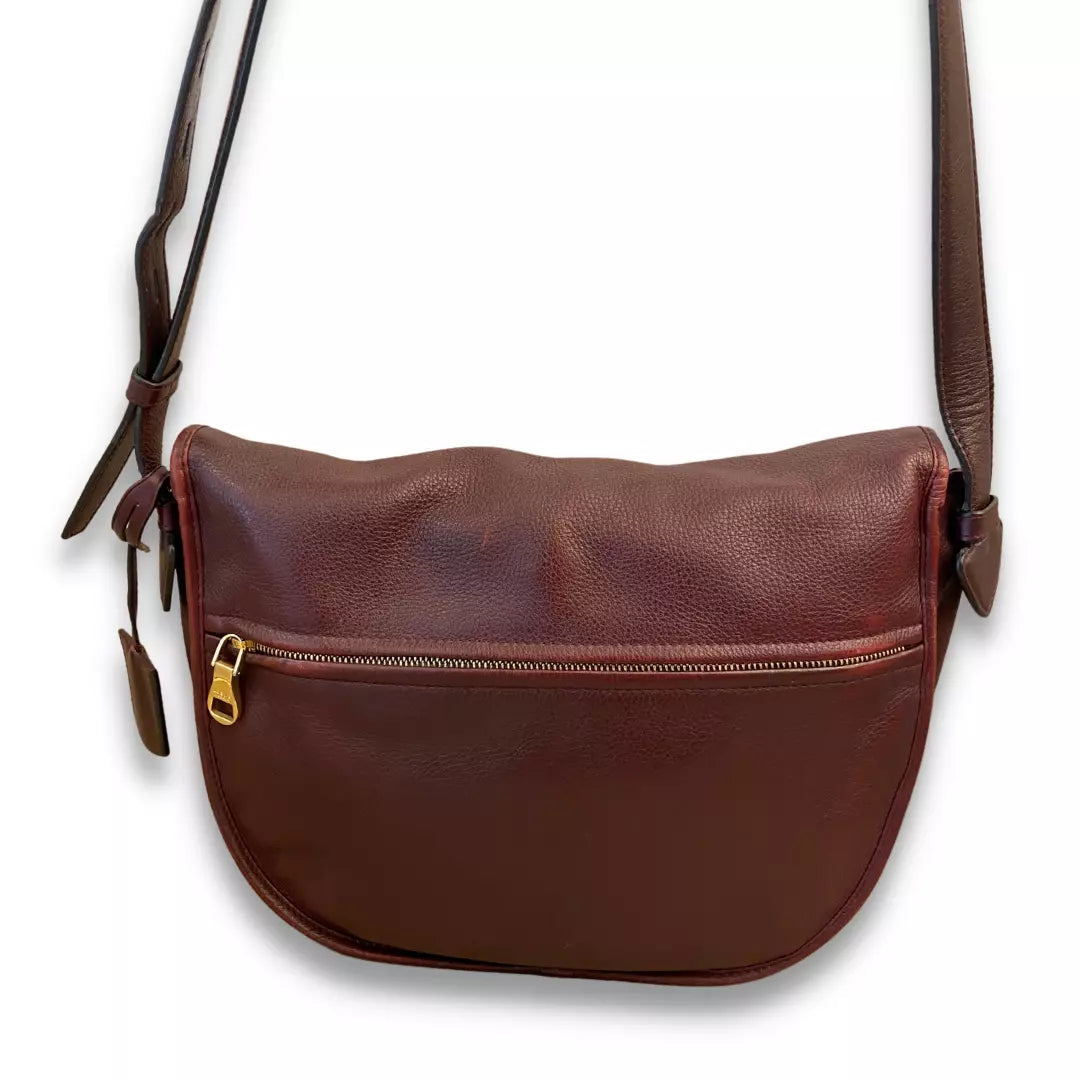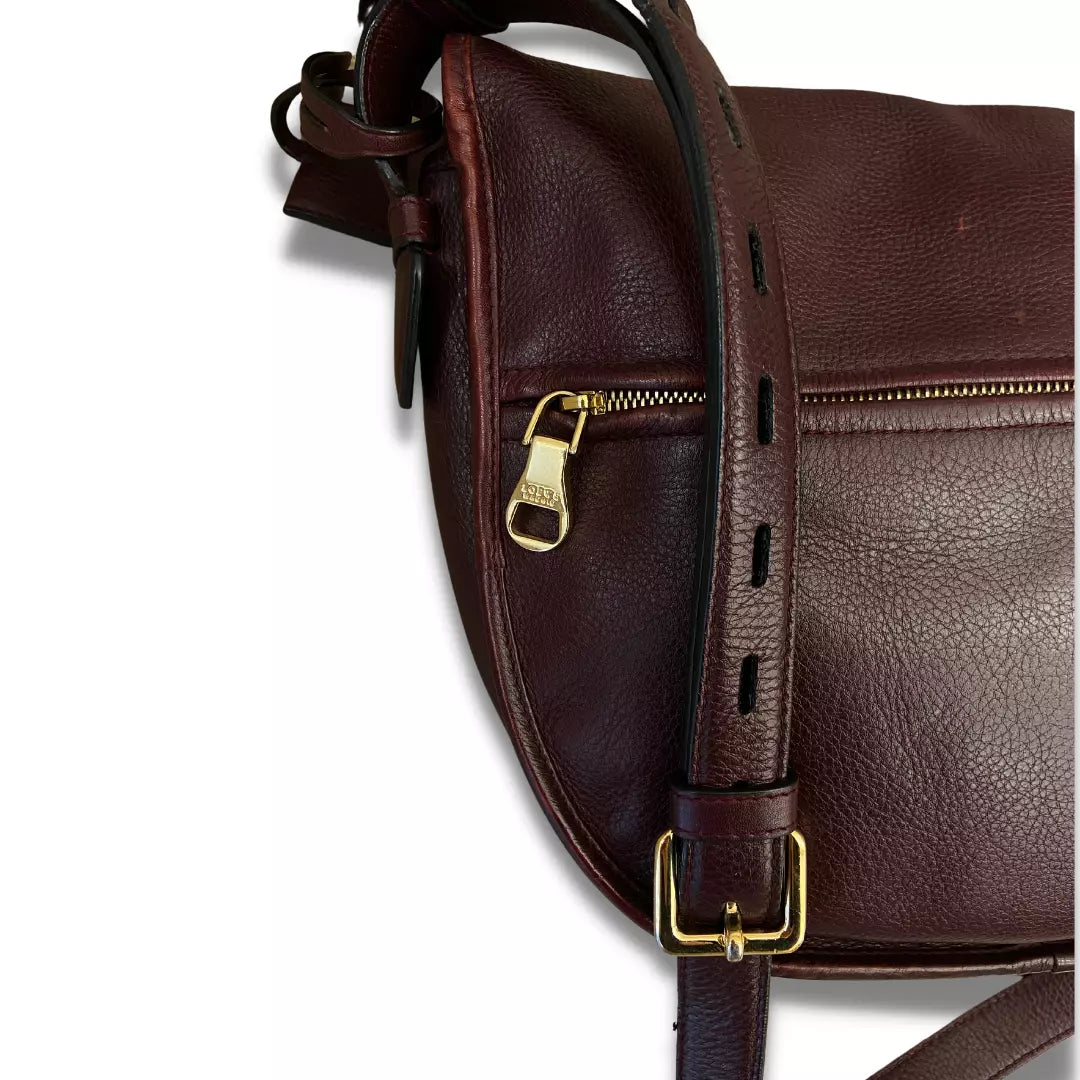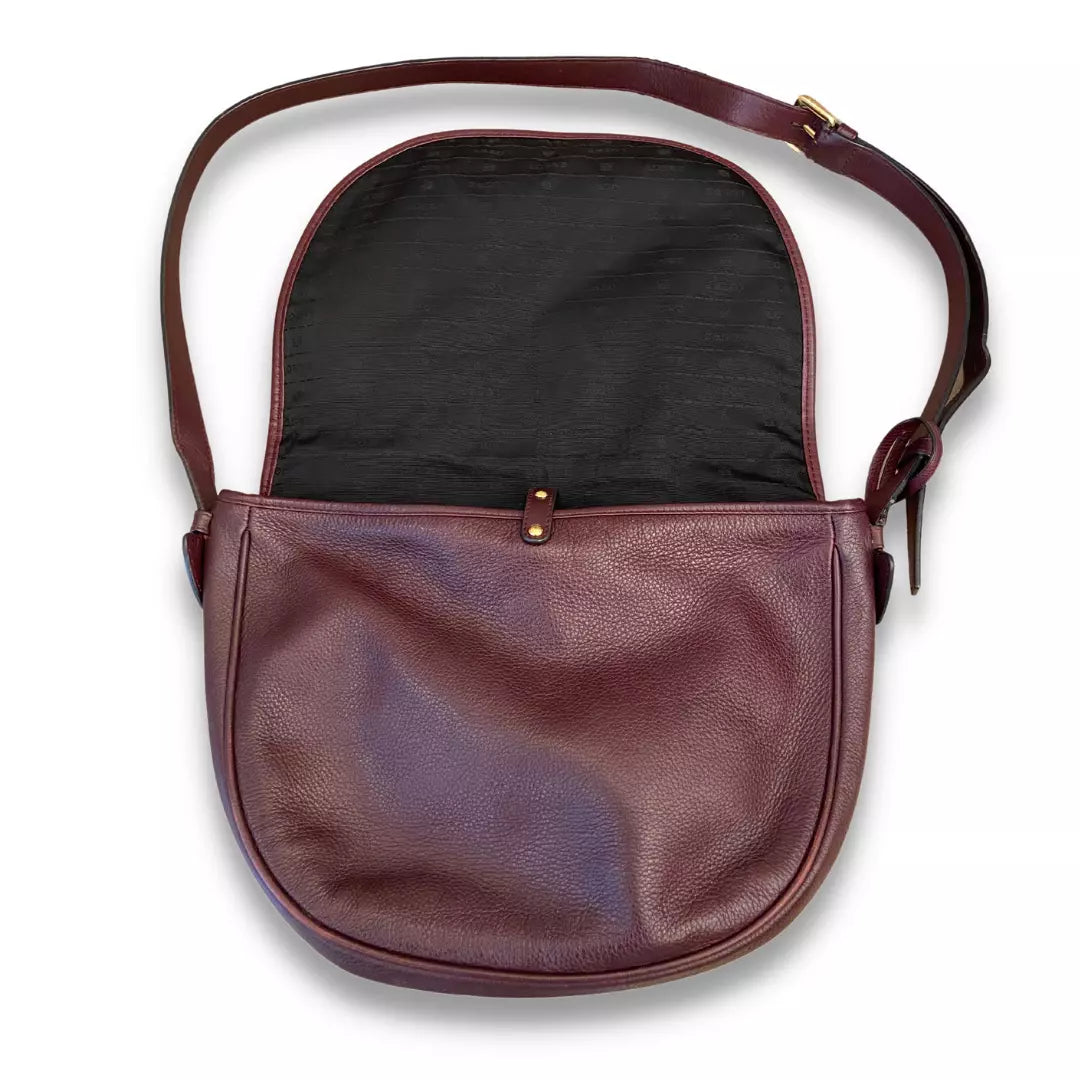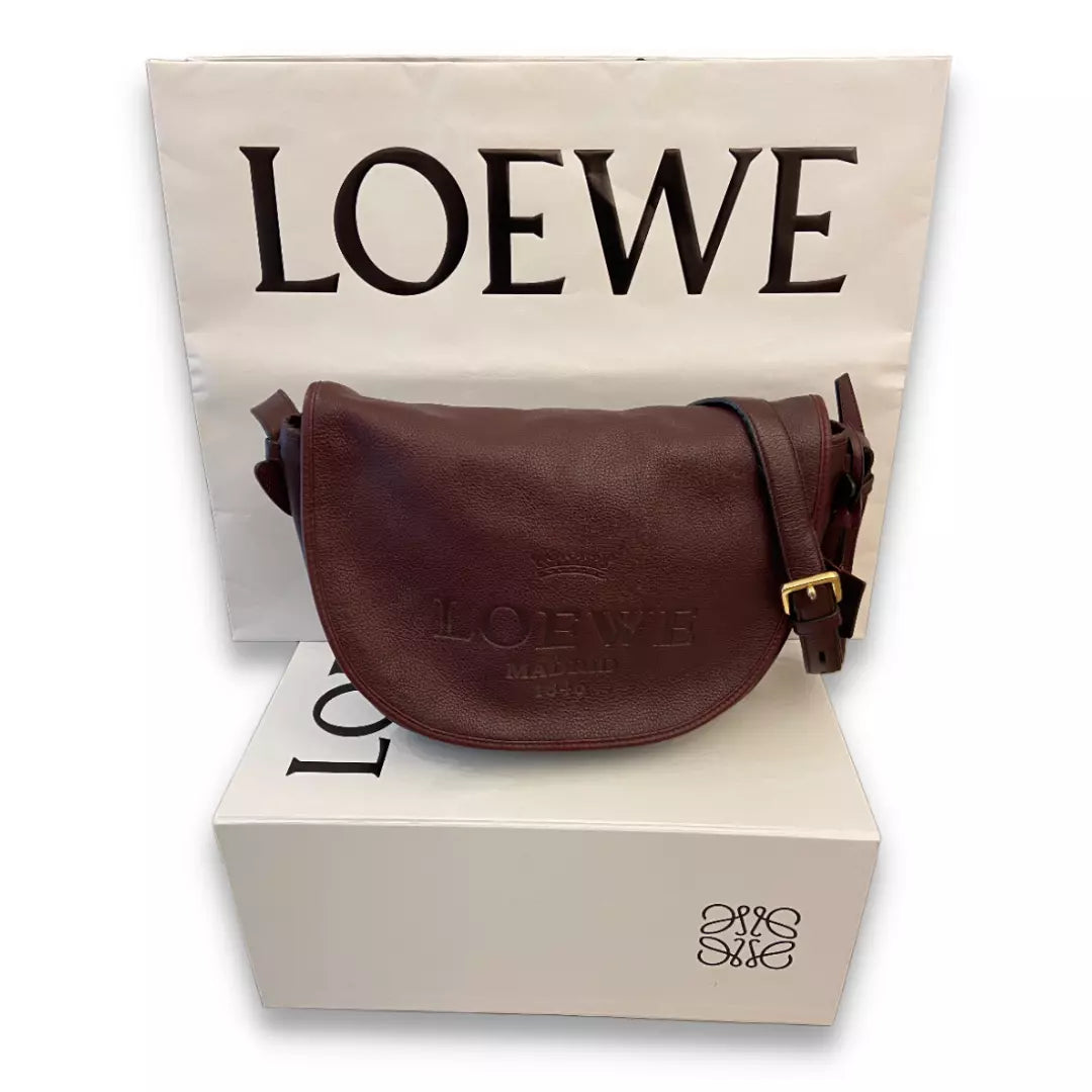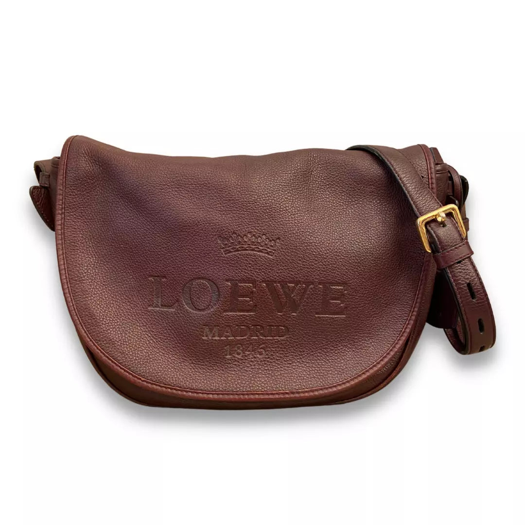 Este bolso Heritage de Loewe en piel de becerro color burdeos cuenta con una correa ajustable para el hombro . Un bolso vintage Loewe único.