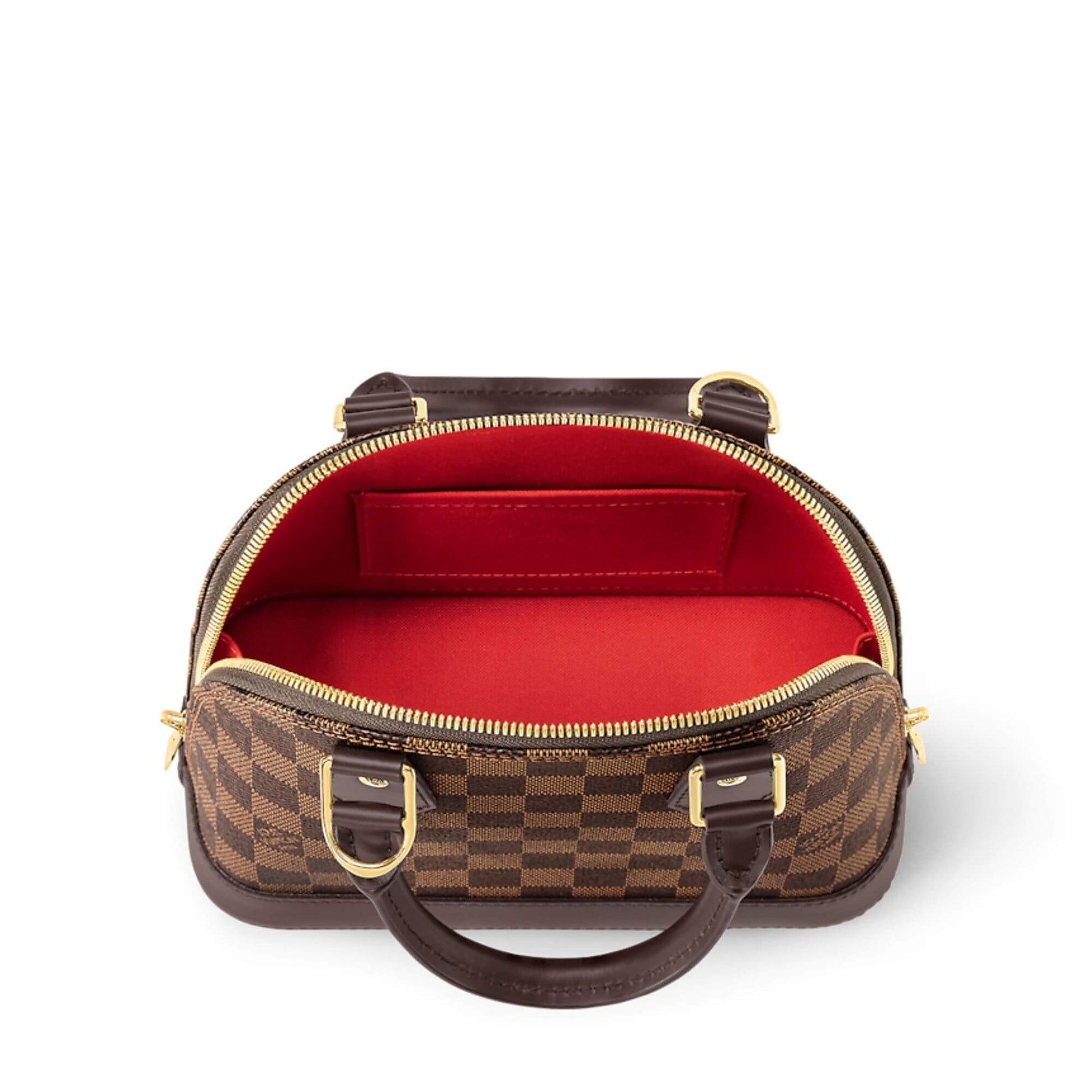 Este NUEVO bolso Alma BB de Louis Vuitton es un clásico icónico de LV. Está confeccionado en lona Ebène con textura de motivo Damier. La cremallera y otros detalles, como el charm, están hechos de metal dorado y piel Epi. Cuenta con una correa de hombro extraíble para mayor comodidad y el interior es de tela roja. Es un clásico de la Maison, perfecto para cualquier ocasión.