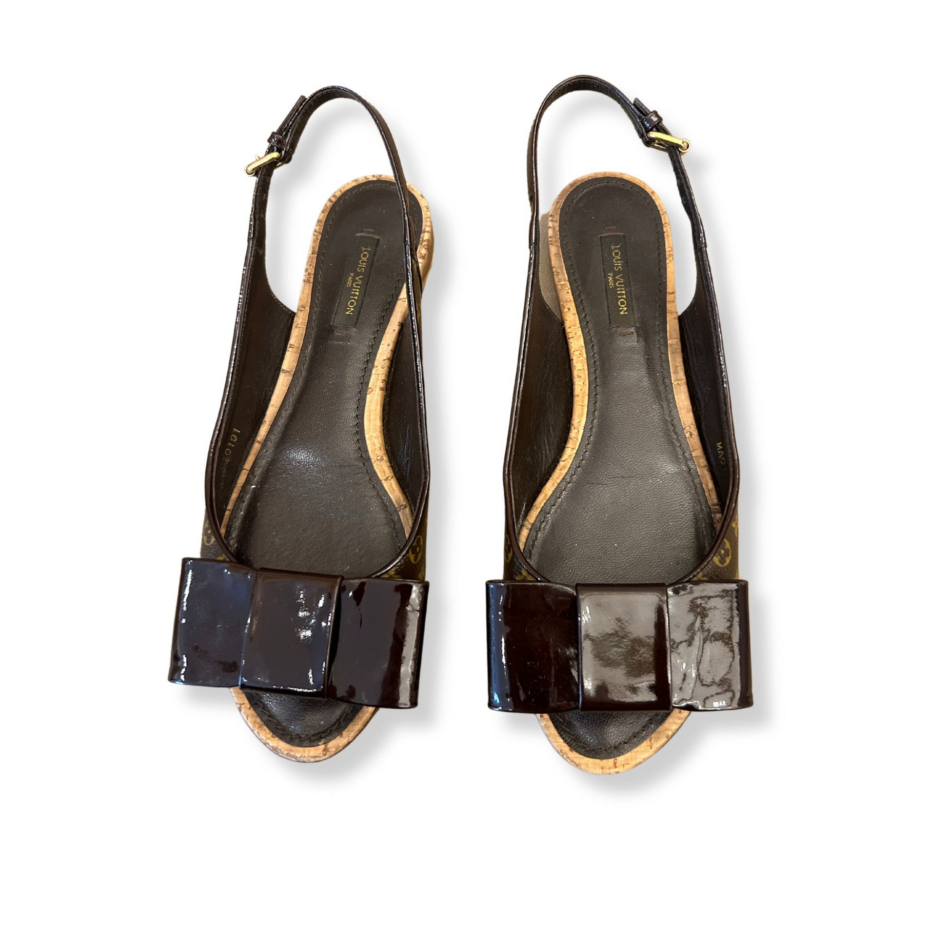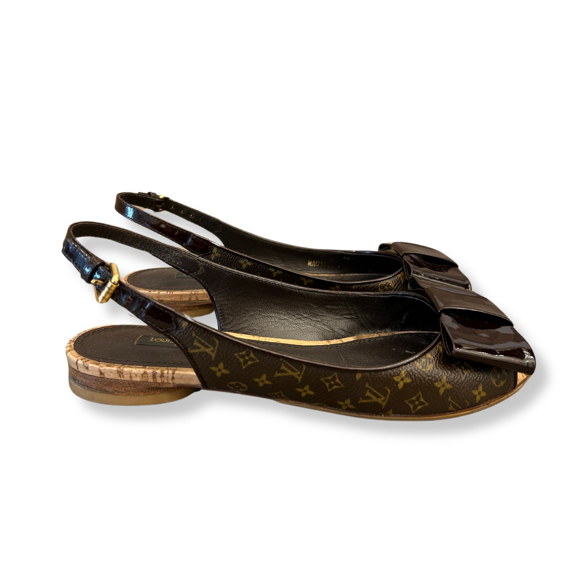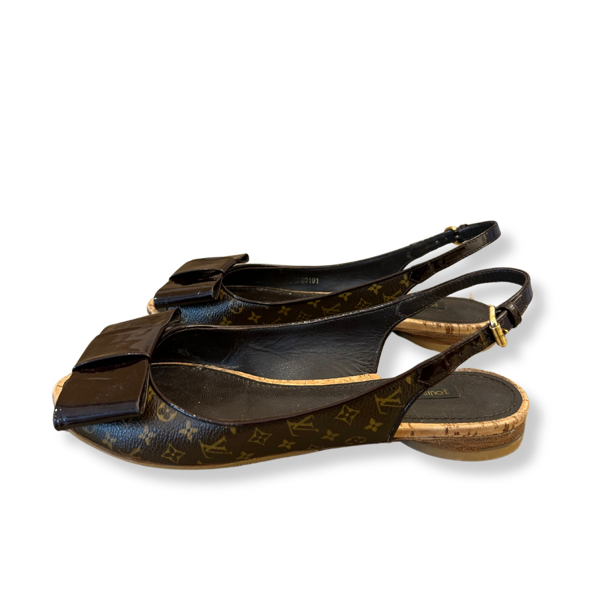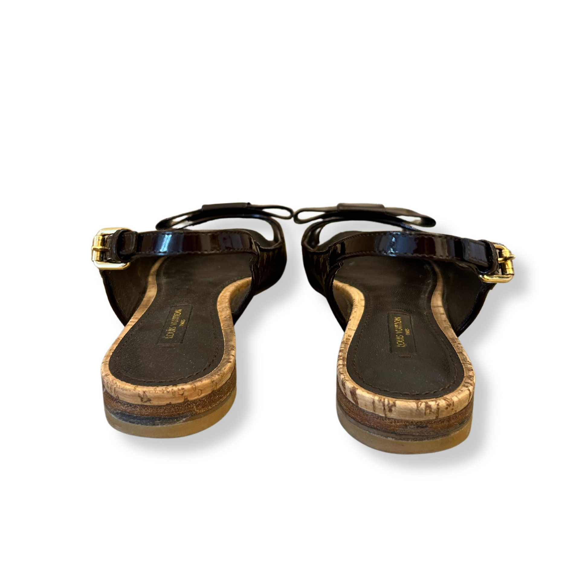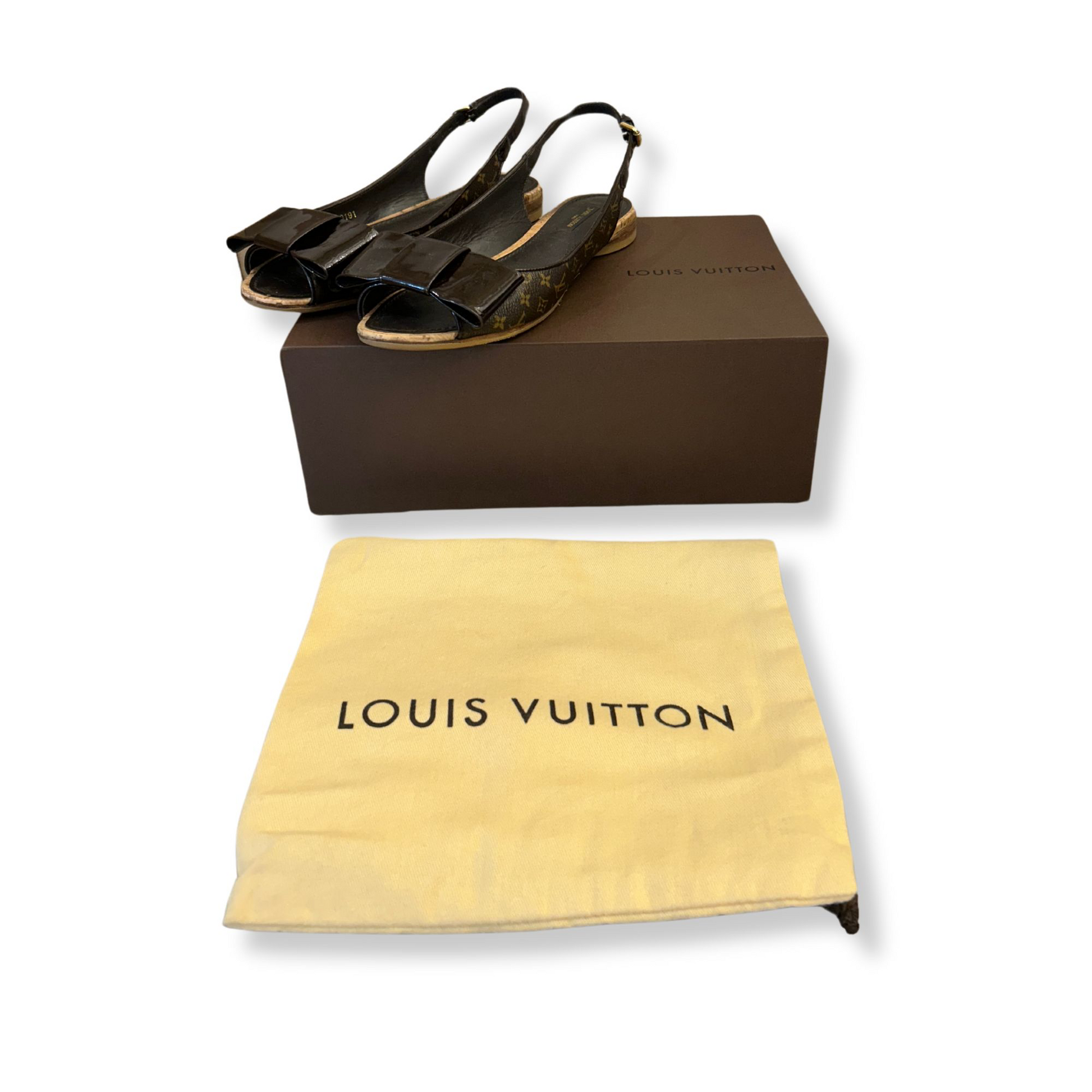 Las sandalias destalonadas Chérie de Louis Vuitton aportan un toque fresco al clásico estilo Louis Vuitton con su femenino talón abierto. La lona Monogram se complementa con charol negro, mientras que la delicada correa se ajusta mediante una pequeña hebilla dorada. La suela de cuero cuenta con una inserción de goma para una mayor resistencia al desgaste.