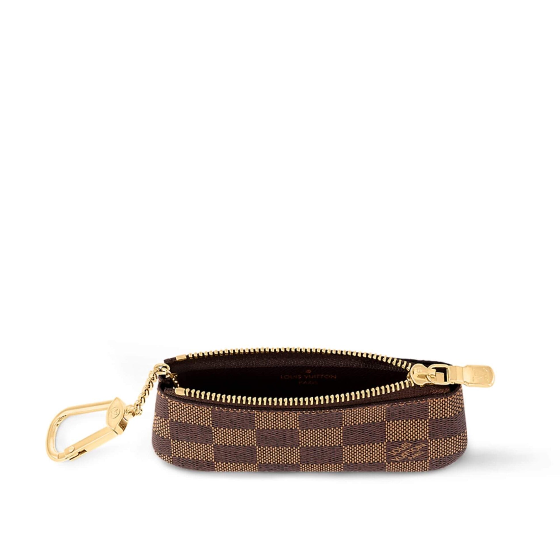 Esta NUEVA Cartera y Llavero Louis Vuitton está confeccionada en la icónica lona Damier Ebène. Los detalles de la cremallera y el llavero están hechos con exclusivos herrajes dorados y lucen el icónico logotipo de LV.