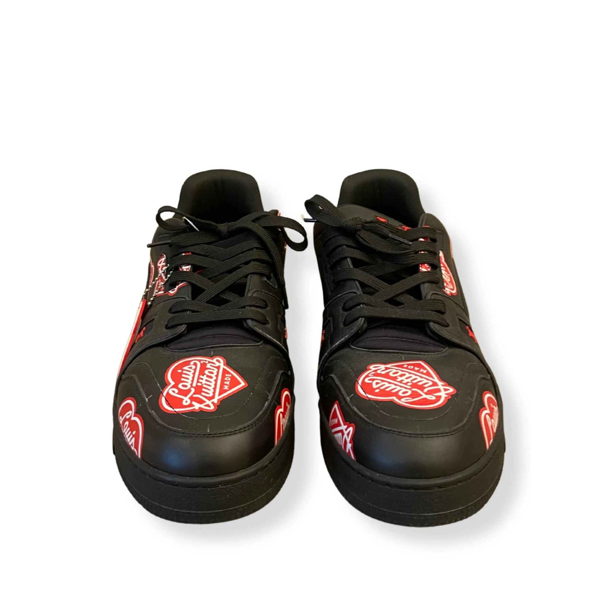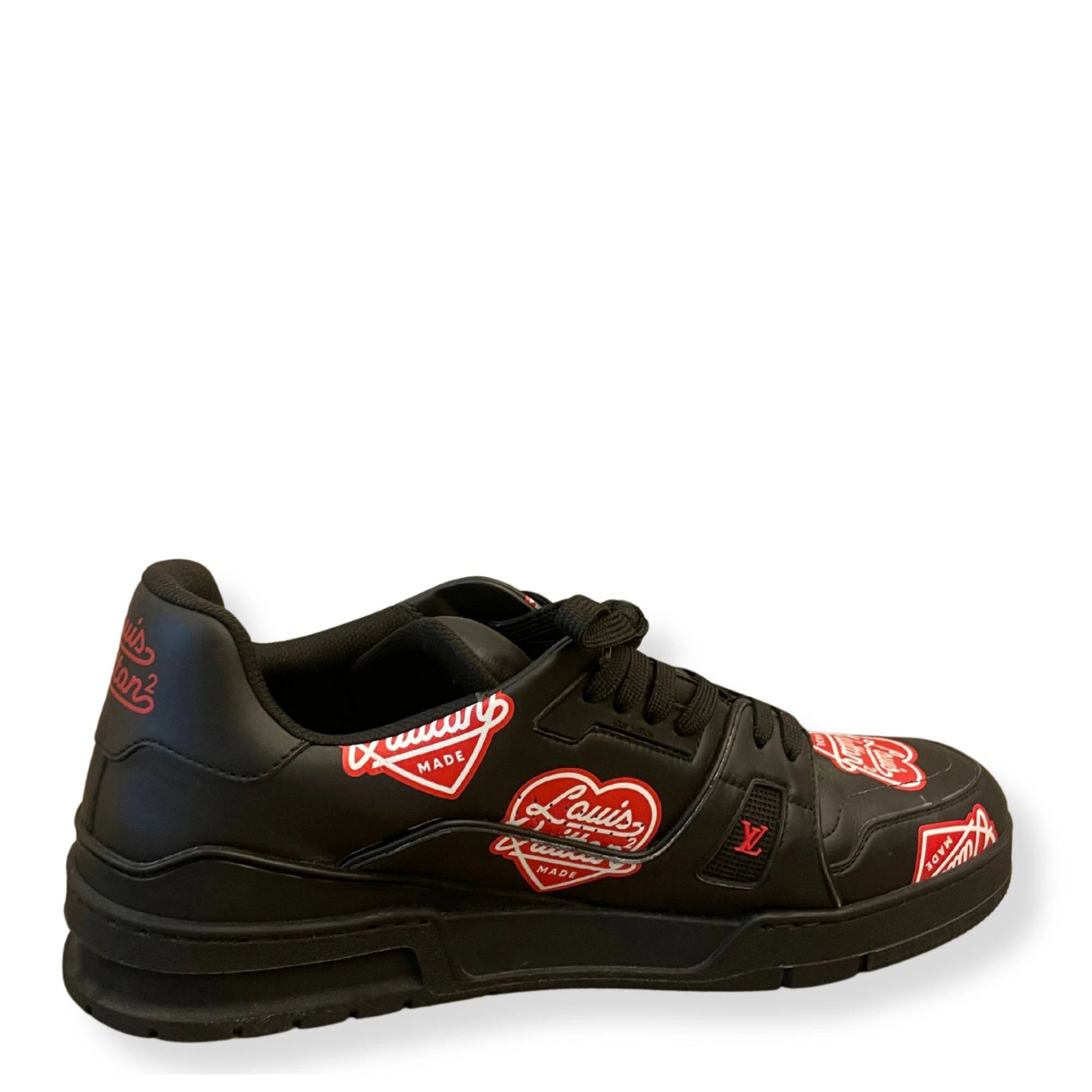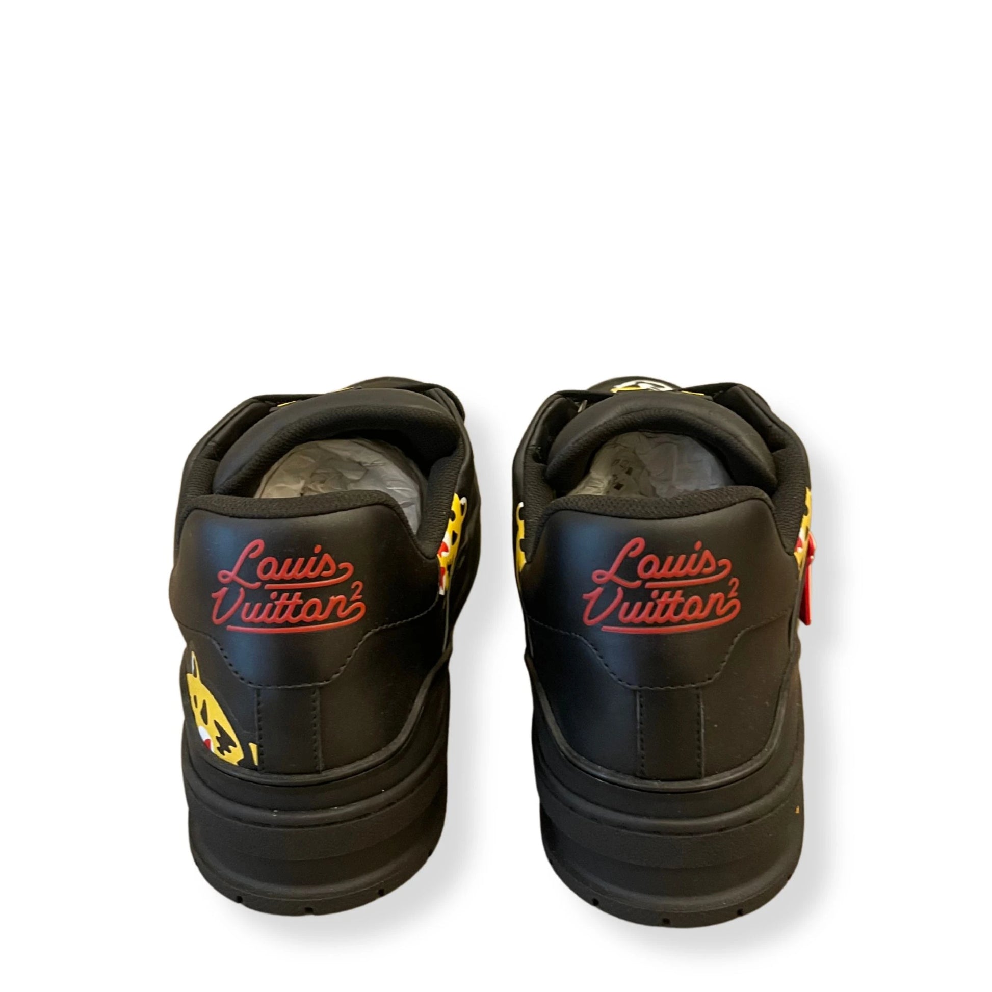LV Trainer x Nigo Negro . Diseñada bajo la dirección creativa de Virgil Abloh en colaboración con el ícono de la moda japonesa Nigo , esta zapatilla redefine el estilo urbano con un toque refinado y de alta costura .