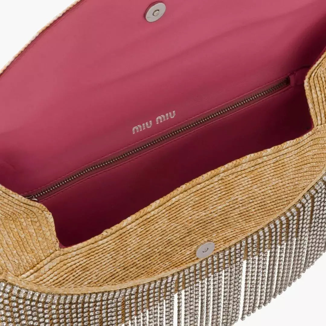 CLUTCH DE PAJA CON CRISTALES MIU MIU