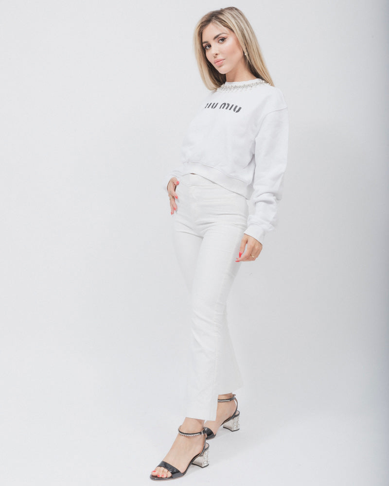 SUDADERA DE ALGODÓN BLANCA CON DECORACIONES MIU MIU