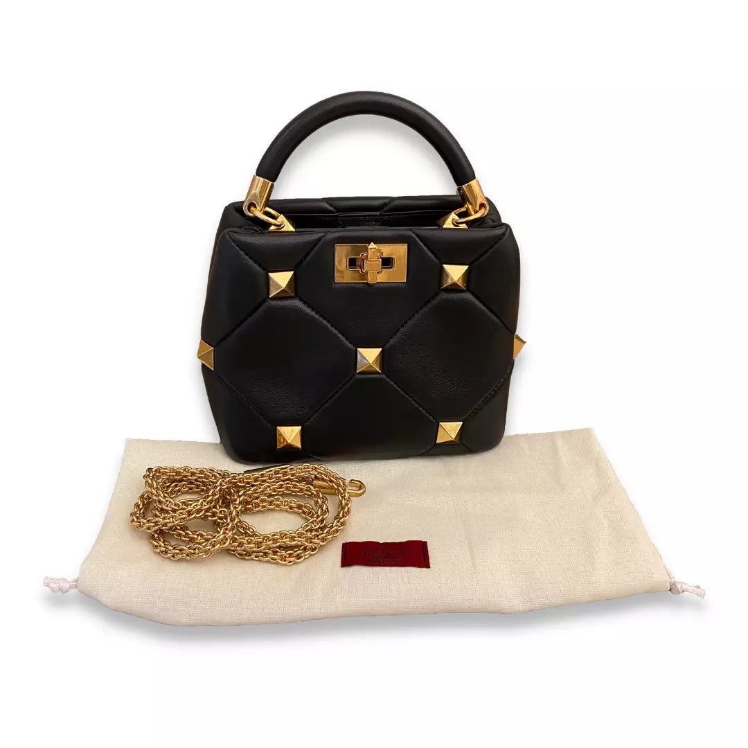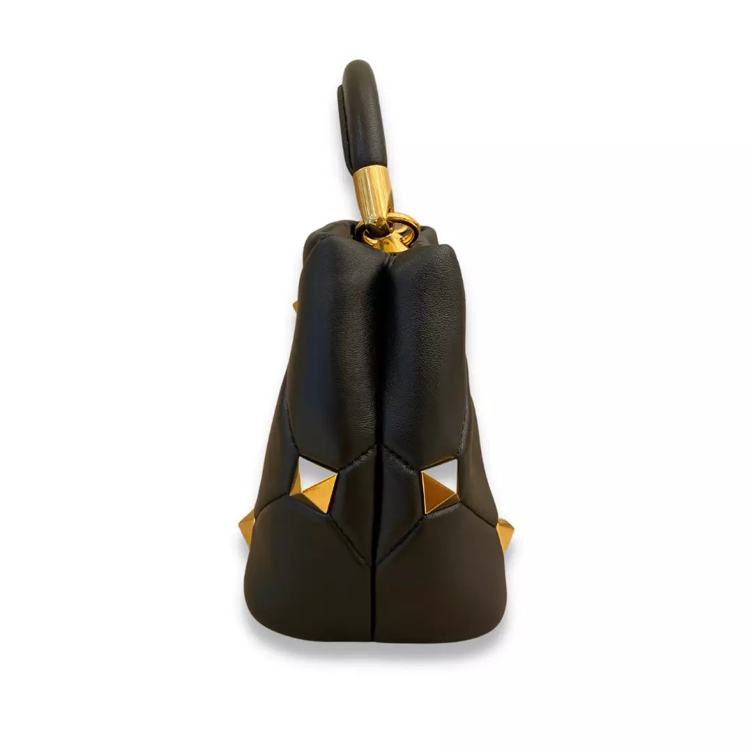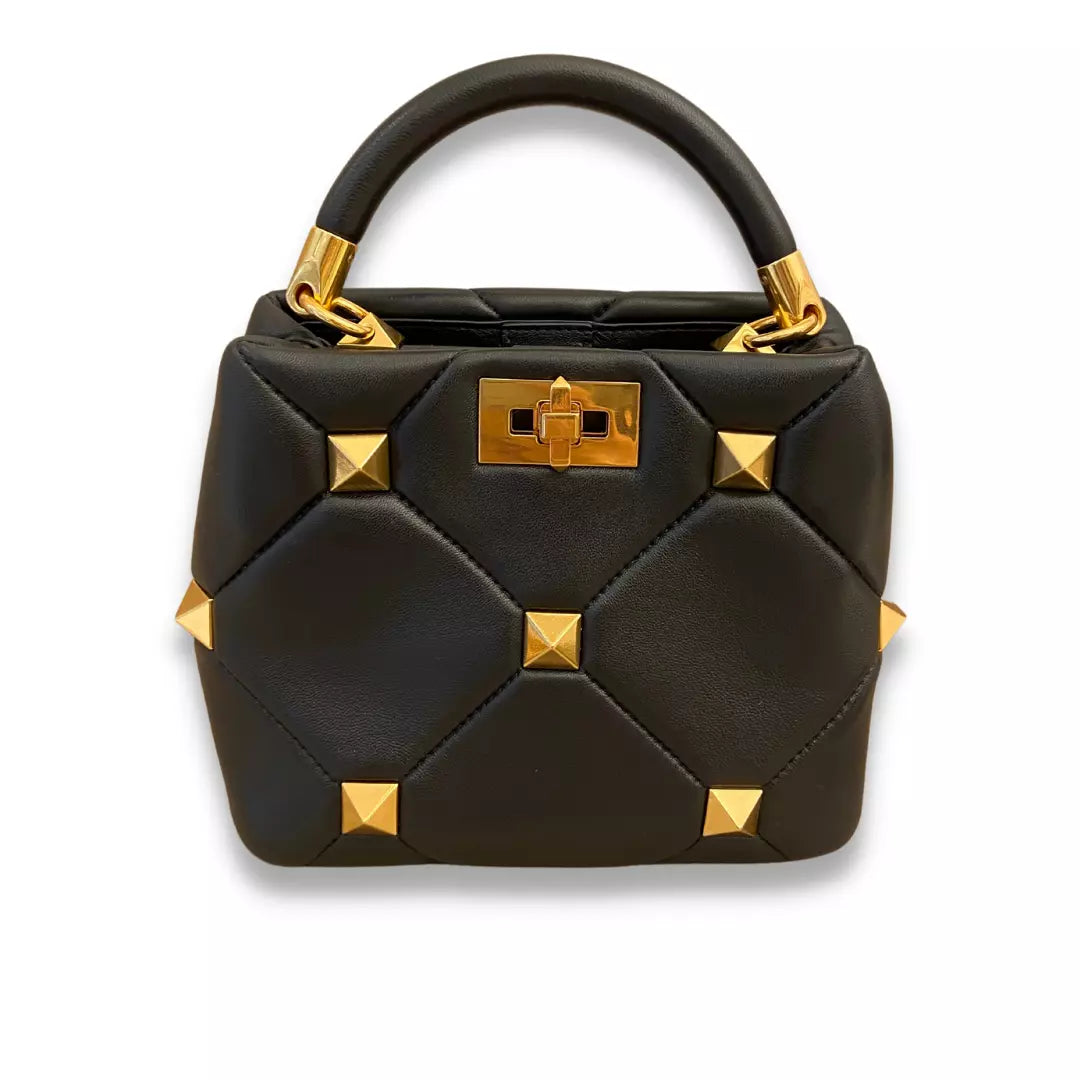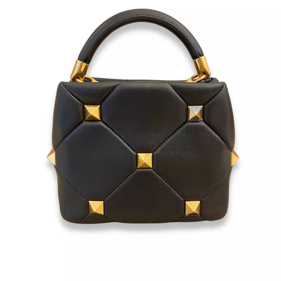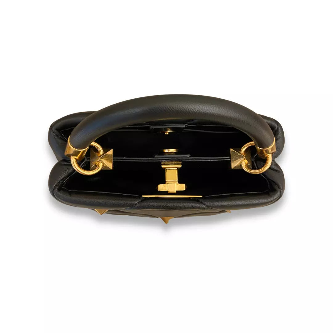 Bolso Valentino con asa y tachuelas romanas de piel napa negra, completamente nuevo. Piel acolchada adornada con tachuelas maxi.