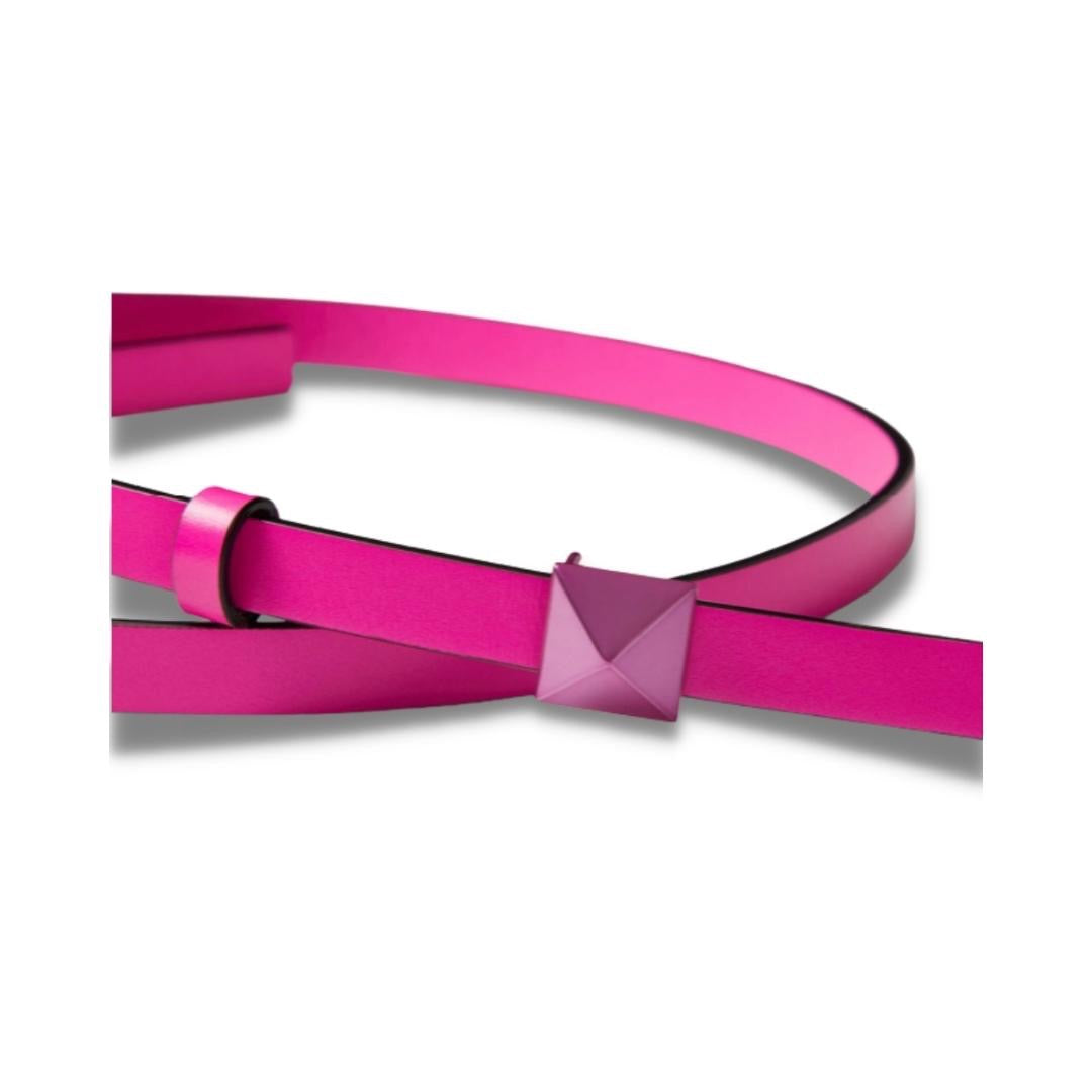 Nuevo cinturón fino Valentino de piel PP rosa, con hebilla de botón a juego y exterior en piel de becerro brillante.