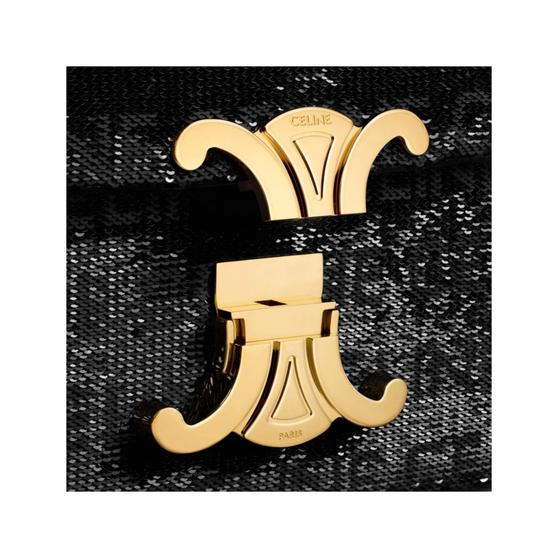 CELINE CHAIN SHOULDER BAG CLAUDE IN SEQUINS WITH CELINE ALL-OVER BLACK