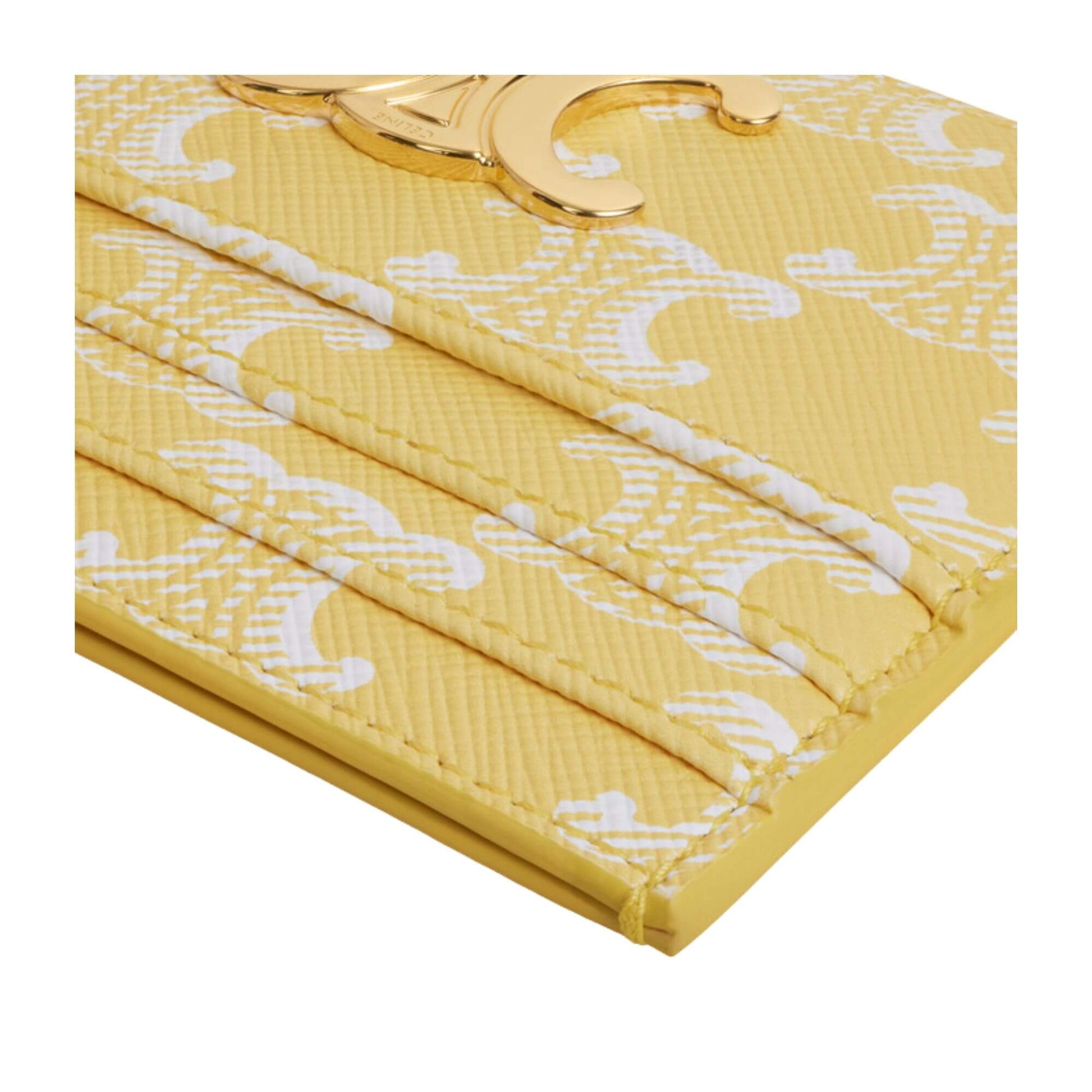 This NEW Celine Card Holder is made out of canvas in Celine triomphe motif in bright yellow tone combined with white, with calfskin lining. All details are gold finished, it has the triomphe icon in the front in metal. It has six slots for cards and one flat pocket.