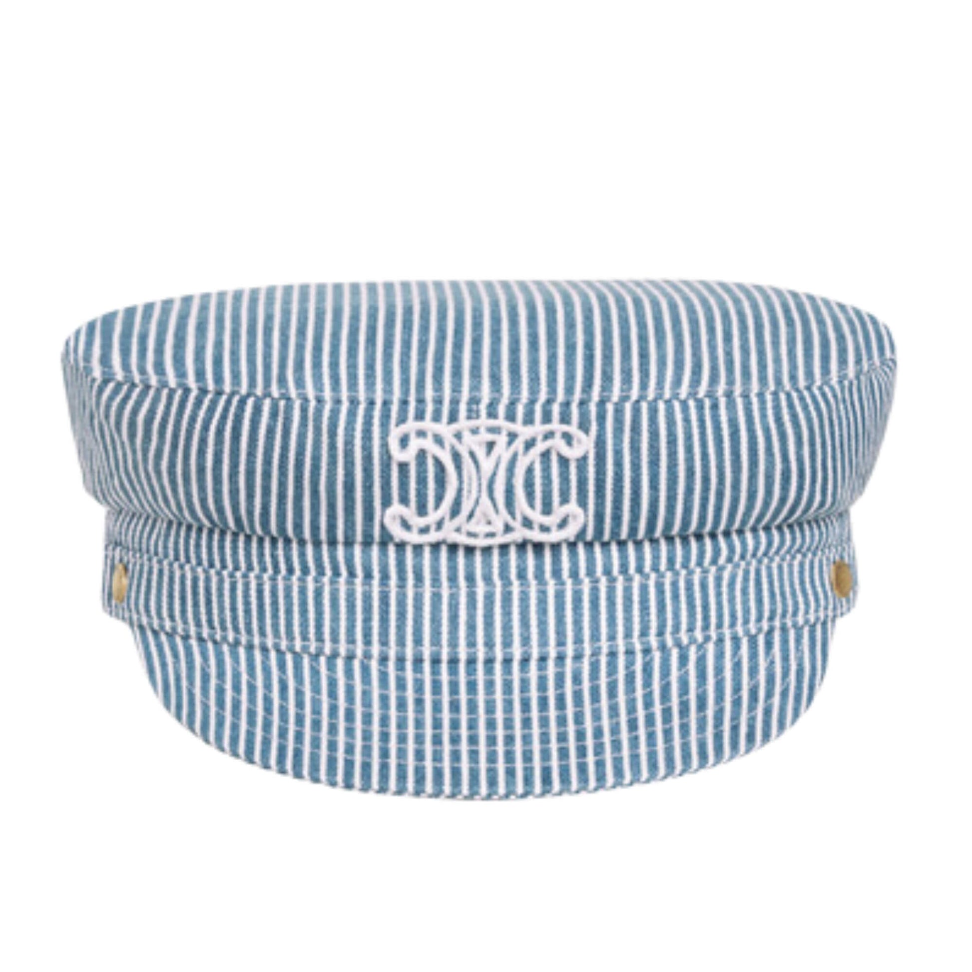 CELINE TRIOMPHE SAILOR CAP IN COTTON HICKORY WAVE WASH