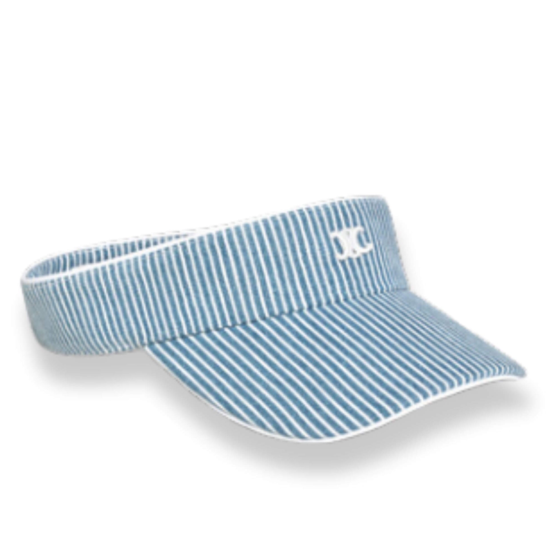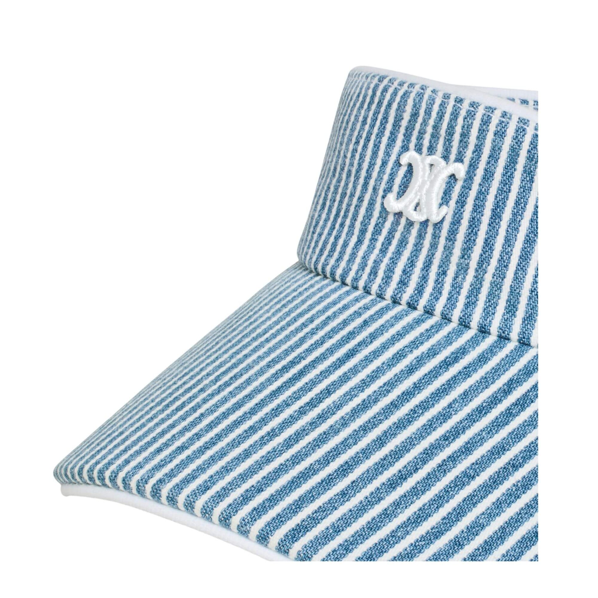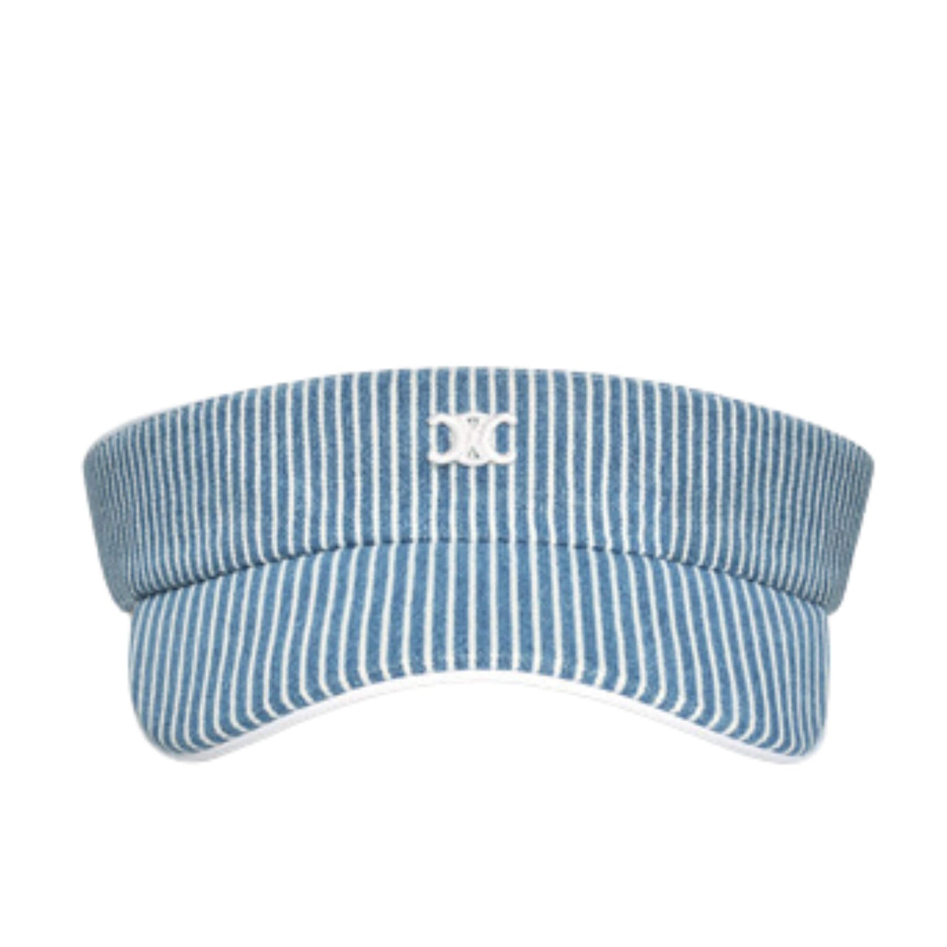 This NEW Celine visor is made out of cotton hickory wave wash with a triomphe patch in white in the front.