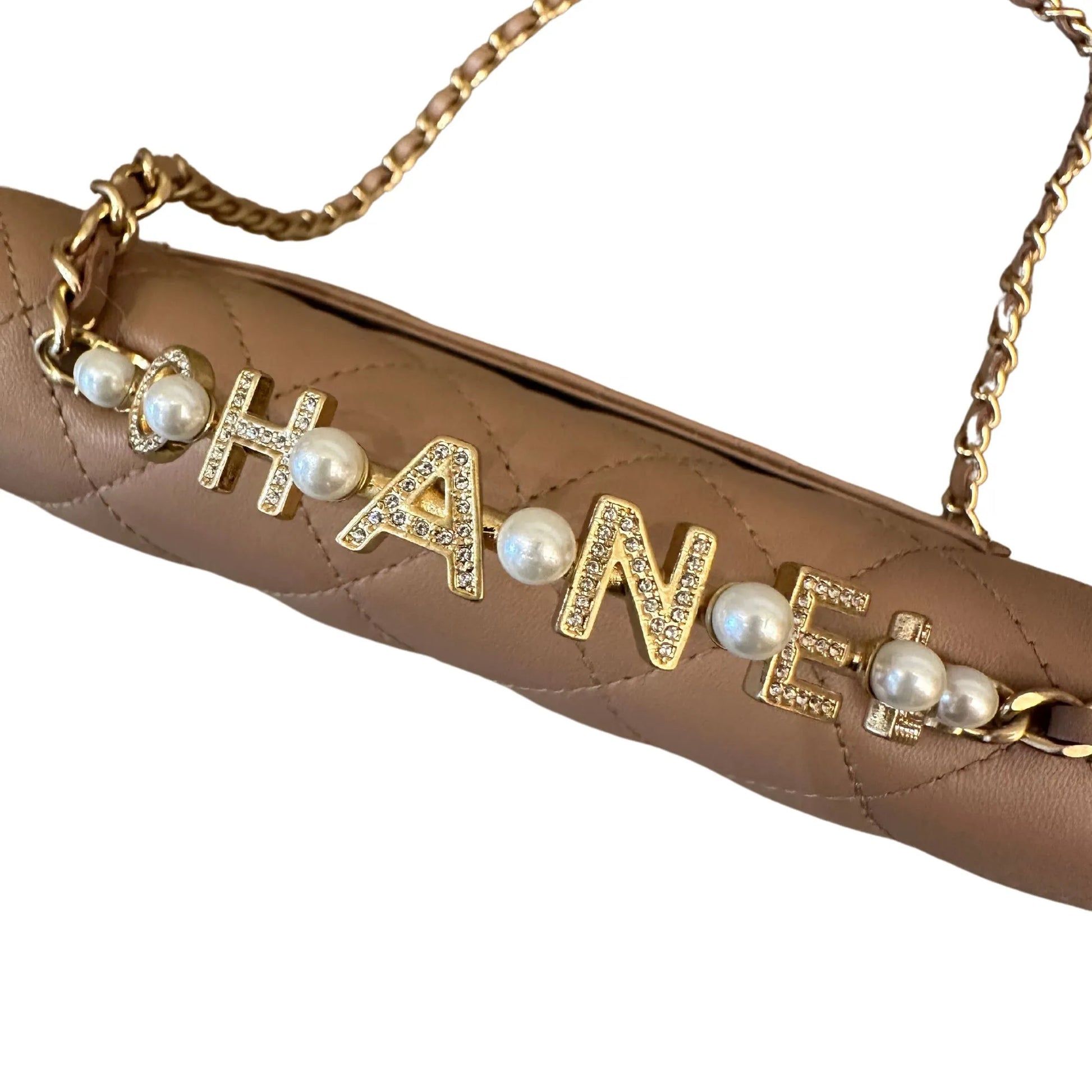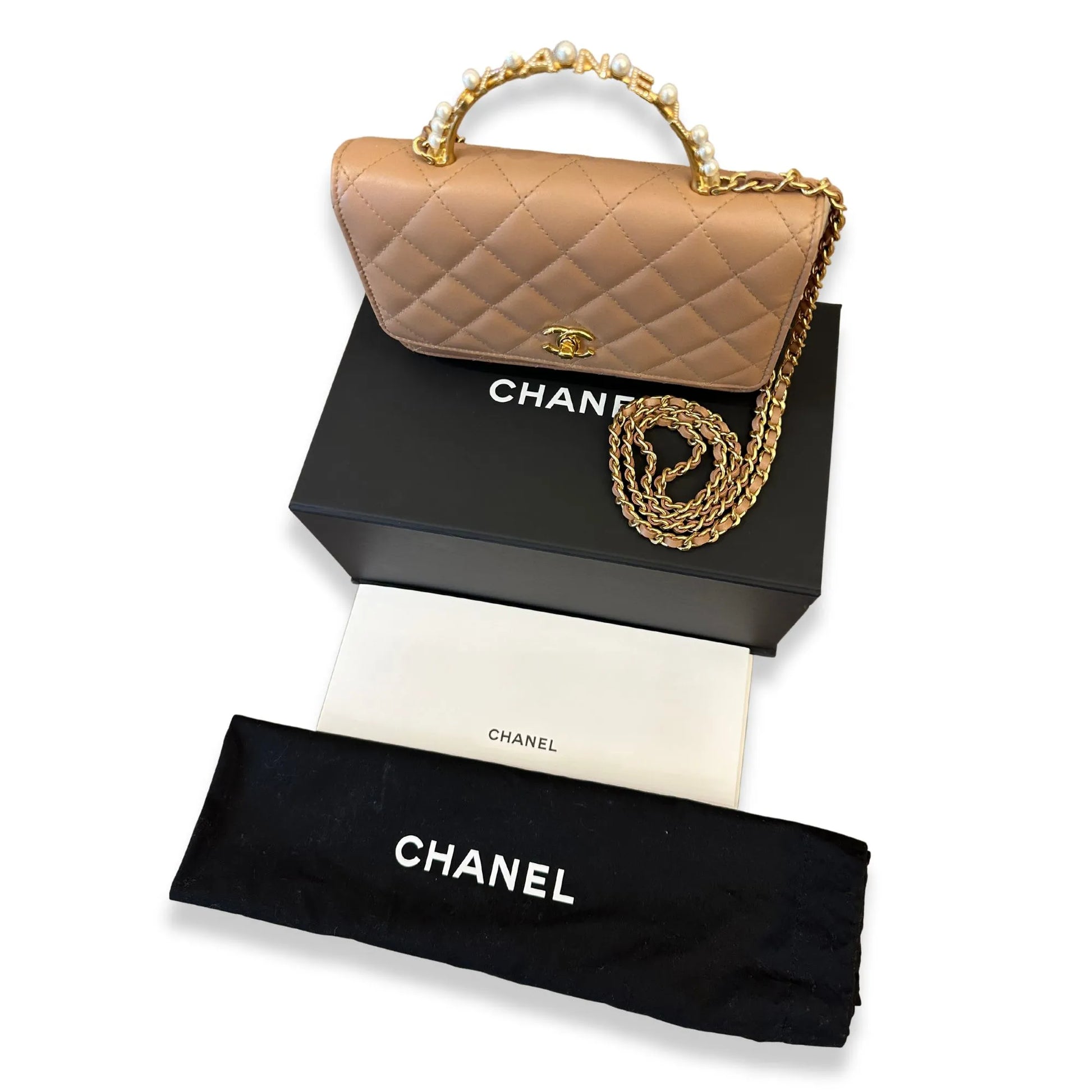 CHANEL BEIGE TOP HANDLE WITH PEARLS BAG
