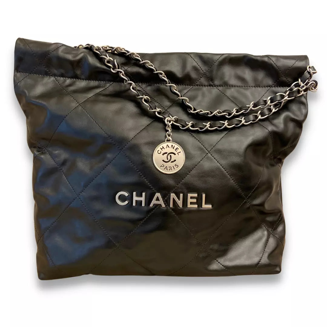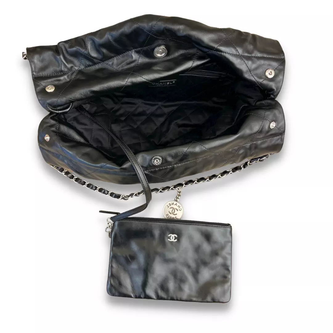 Completely new Small Chanel Black Leather 22 Bag, still with plastics. One of the must have's of 2022. It is completely sold out everywhere.
