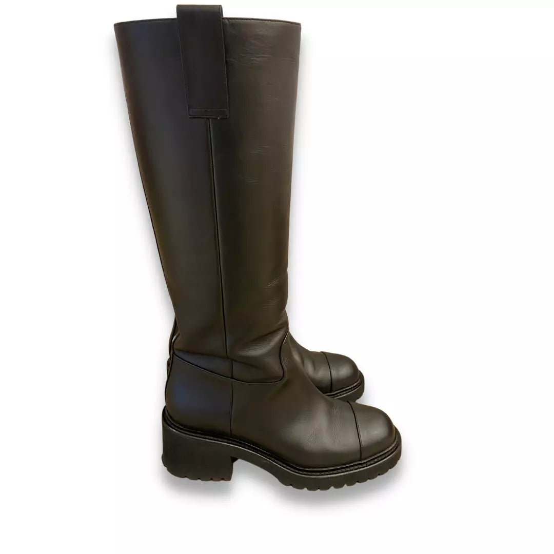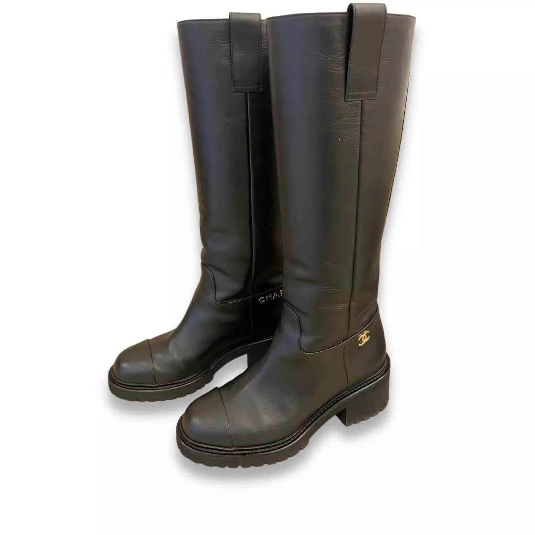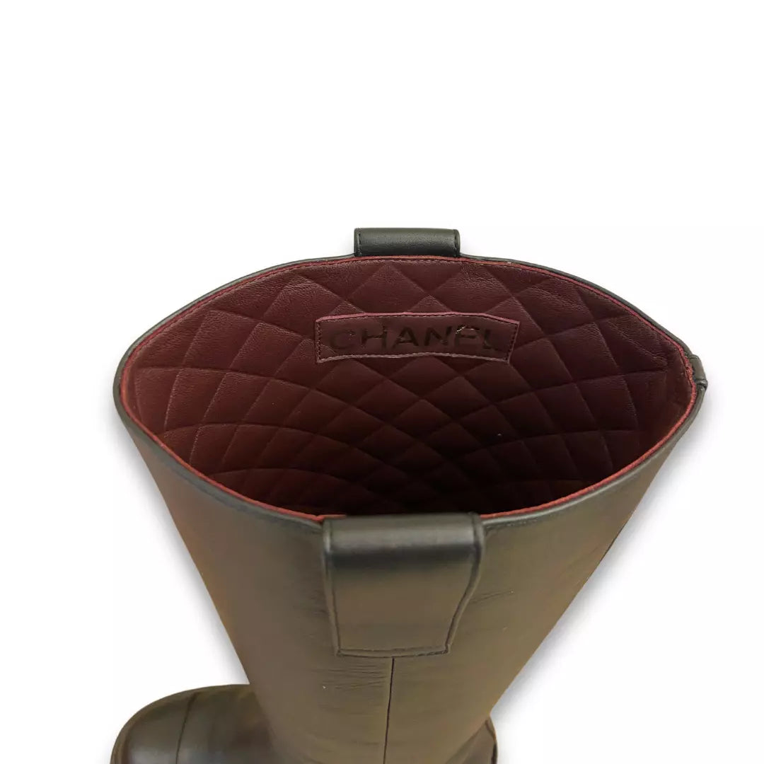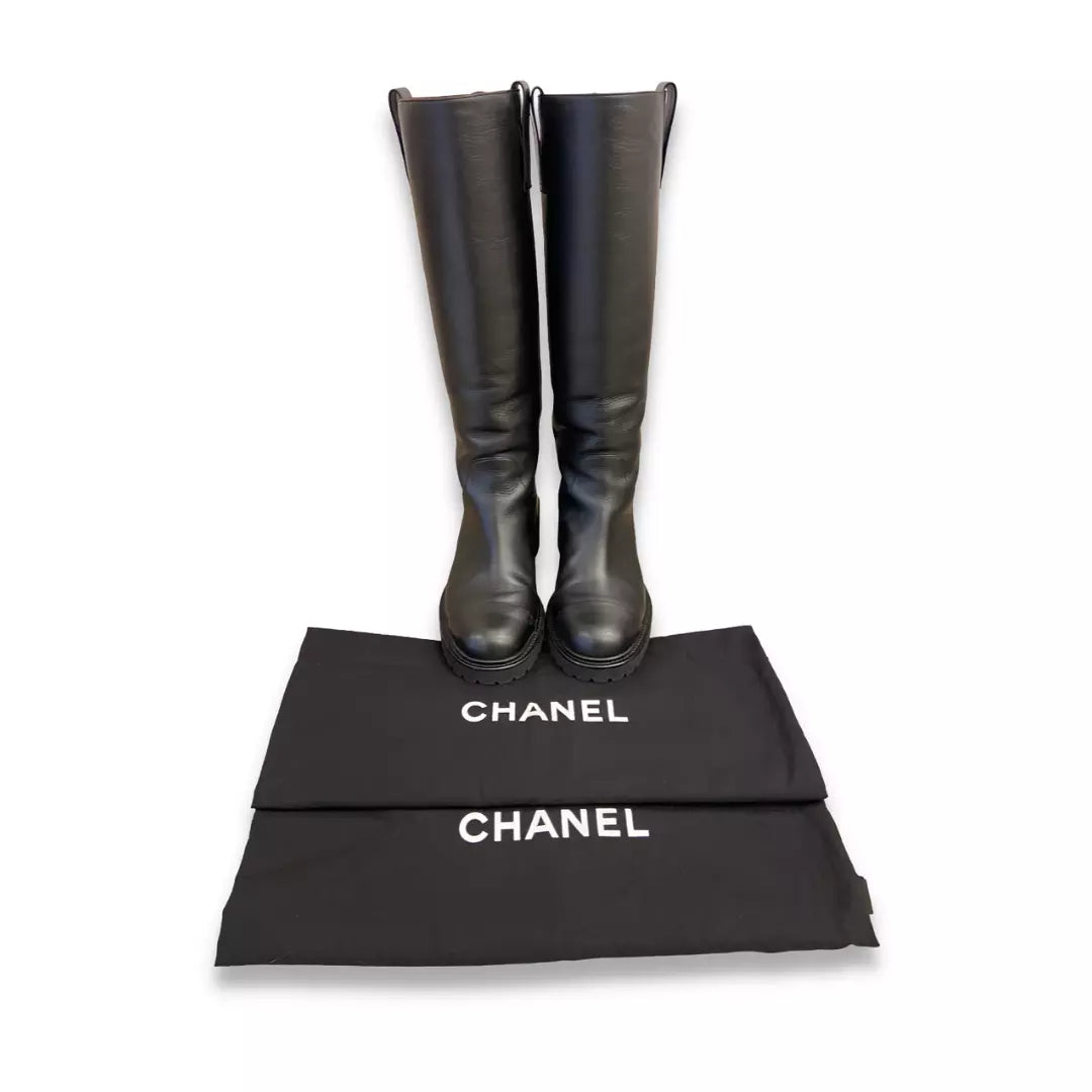 CHANEL BLACK CALFSKIN LEATHER HIGH BOOTS