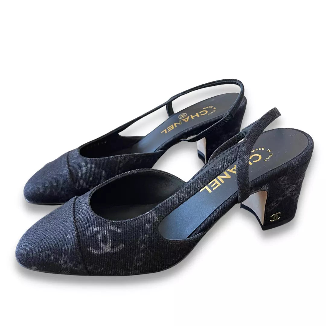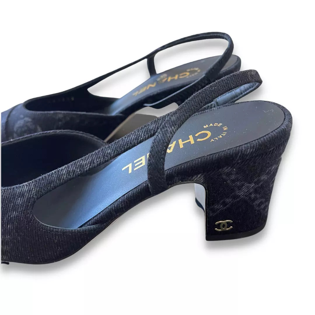 These New Chanel Black Denim Pump are an example of the label's expert styling. The height of the heel is 5,5cm. These featured in black denim canvas leather.