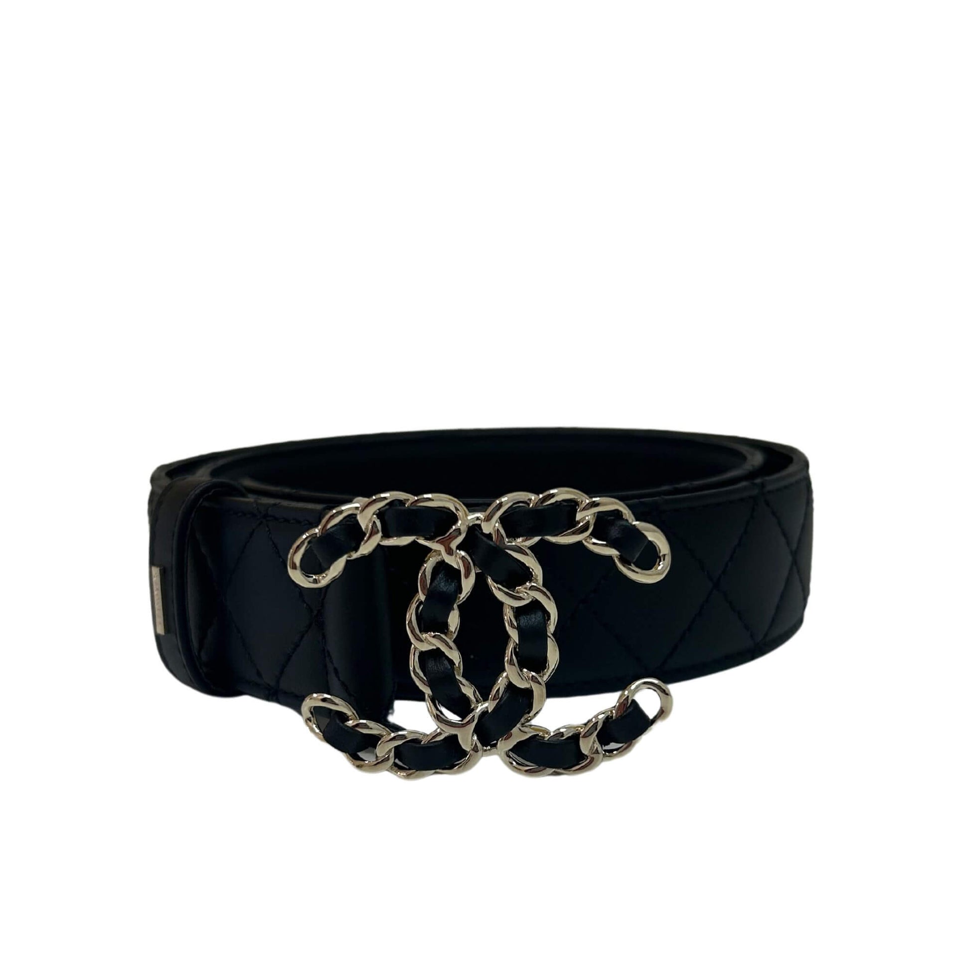 CHANEL BLACK LEATHER CC CHAIN BELT