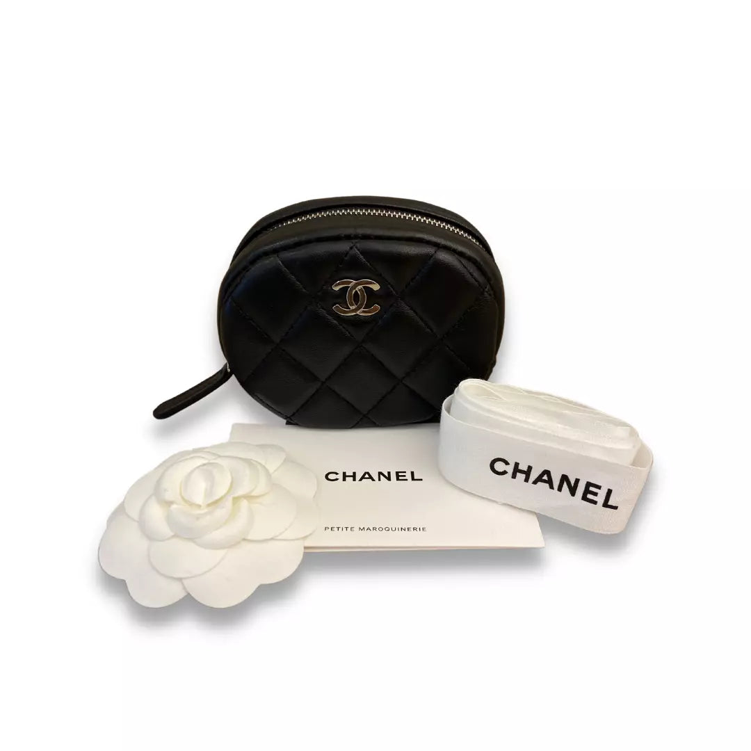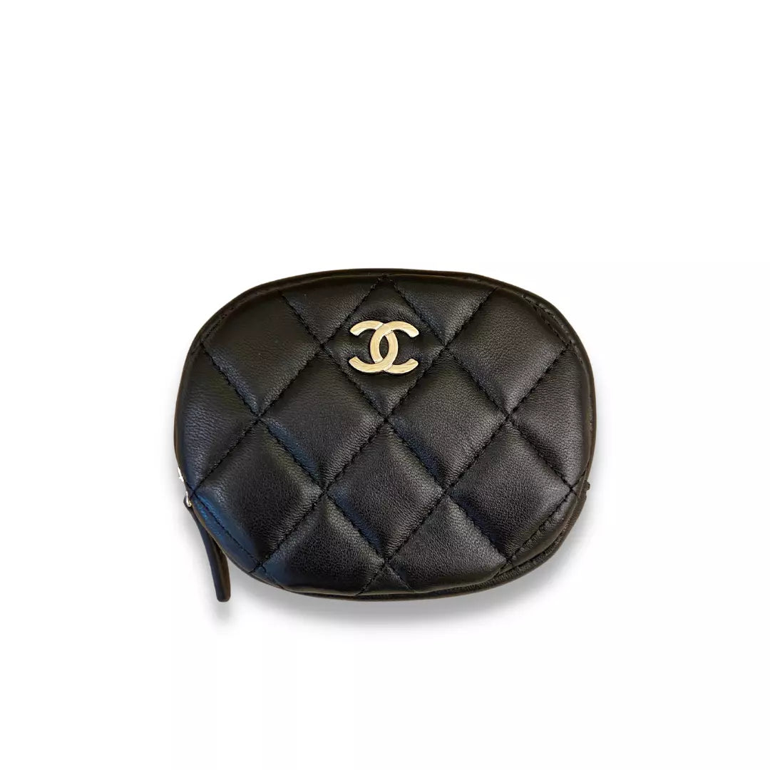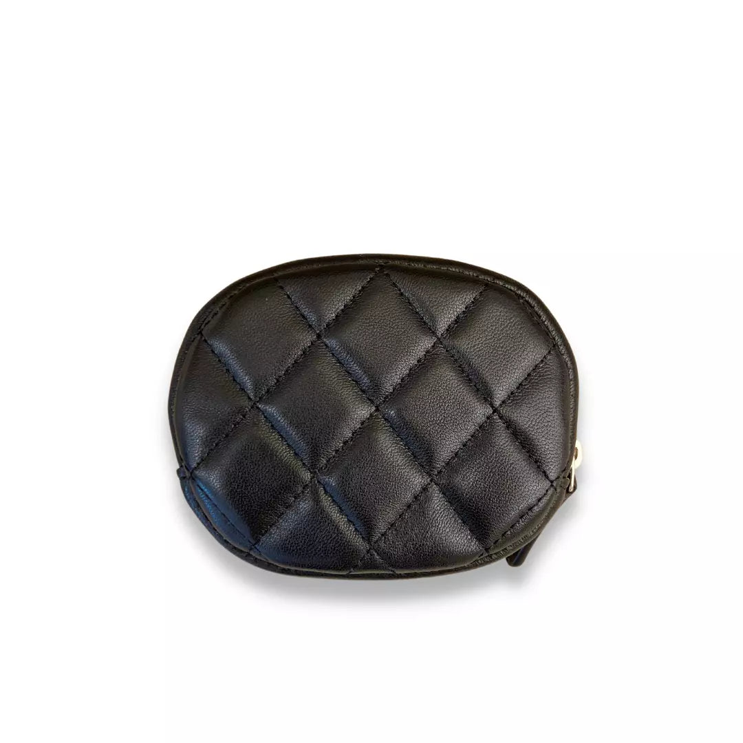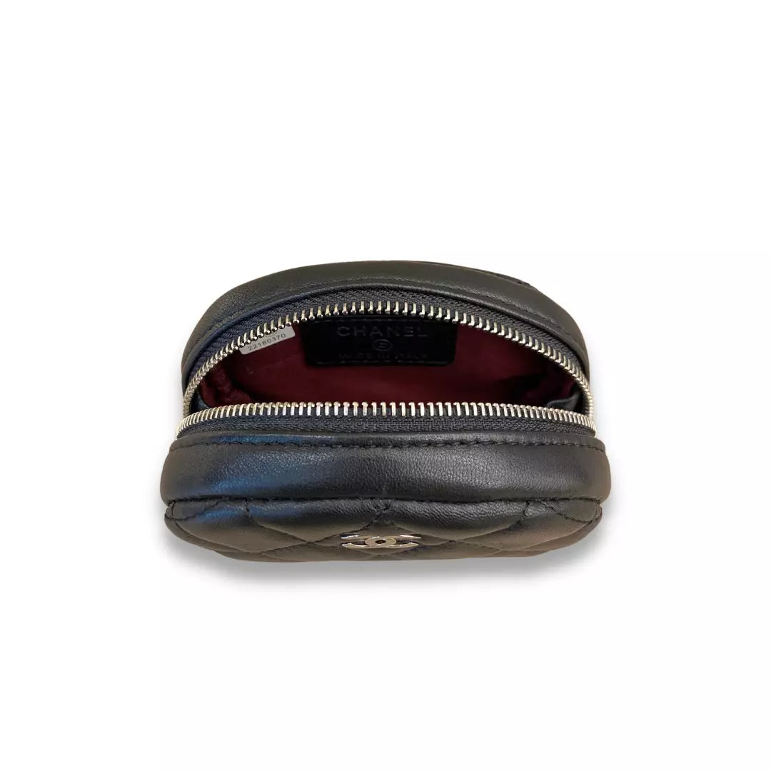 CHANEL BLACK LEATHER ROUND COIN PURSE