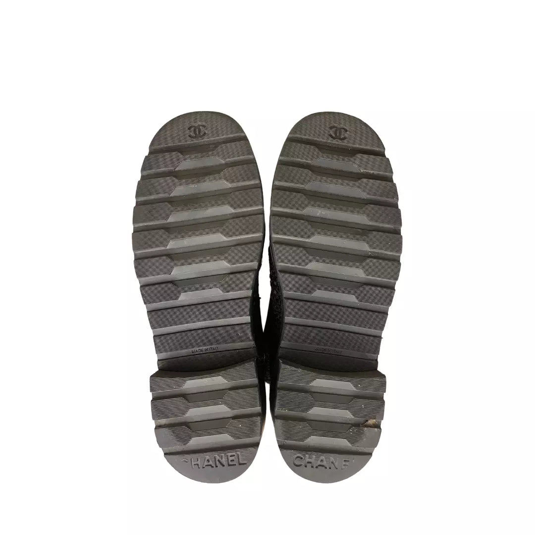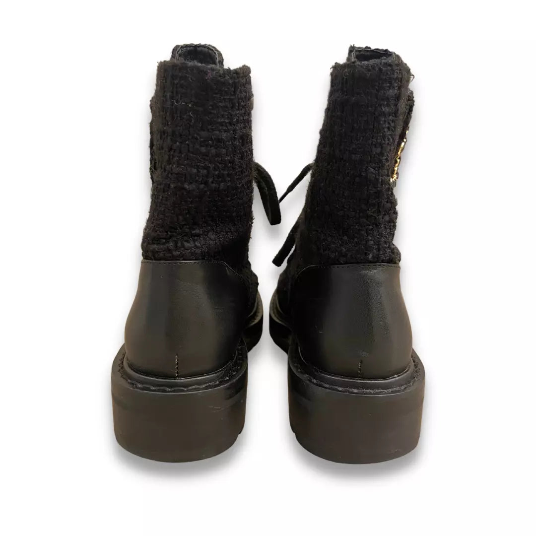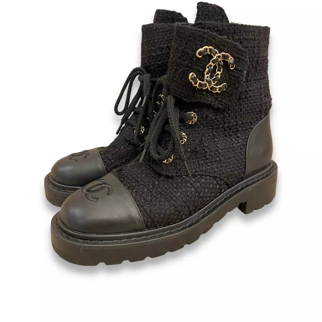 CHANEL BLACK QUILTED TWEED CC BOOTS
